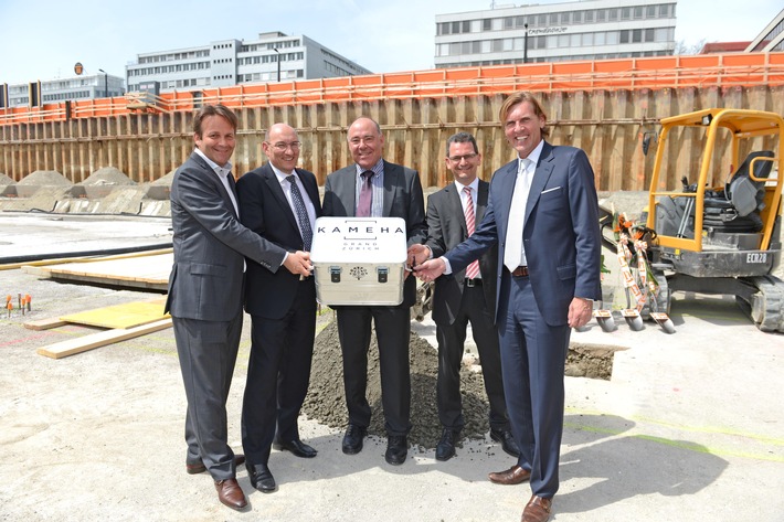 MedienmitteilungGrundsteinlegung des Hotelprojekts "Kameha Grand Zürich" (Bild)2013-04-26T19:38:10Zürich (ots) - Heute Mittag wurde im Glattpark ZH der symbolische Grundstein für das Lifestyle-Hotel Kameha Grand Zürich gelegt. Carsten K. Rath, CEO der LH&E Management AG, Stardesigner Marcel Wanders sowie Vertreter der UBS Fund Management (Switzerland) AG gaben Einblick in das innovative Lifestyle-Hotelkonzept. In Anwesenheit von Behördenvertretern, Geschäftspartnern sowie Prominenz aus Wirtschaft und Hotellerie wurde heute im Glattpark ZH mit einem feierlichen Akt der symbolische Grundstein für das Lifestyle-Hotel Kameha Grand Zürich gelegt. Nach der Begrüssung durch Bernhard Ruhstaller, Leiter Gebietsmarketing Glattpark, lobte der Opfiker Stadtpräsident Paul Remund das Projekt als "Glücksfall" für die Region. "Ich bin überzeugt, dass das Kameha Grand Zürich mit seiner raffinierten Architektur und dem eindrucksvollen Interieur viel zum Image von Glattpark als Trendgebiet beitragen wird", sagt Remund. Dr. Daniel Brüllmann von der UBS Fund Management (Switzerland) AG, die mit dem Immobilienfonds "Sima" in das Projekt investiert, zeigte sich ebenfalls zuversichtlich: "Das solide Nutzungskonzept, die hohe Qualität der Partner und die verkehrstechnisch gute Lage sind ideale Voraussetzungen für einen erfolgreichen Betrieb." Nach Ansprachen von Sebastian Knorr, CEO des ausführenden Architekturbüros tec Design, und Rebecca Zuber, COO des Generalunternehmens HRS Real Estate AG, präsentierte Carsten K. Rath, Gründer und CEO der Schweizer Managementgesellschaft LH&E Management AG, das innovative Lifestyle-Hotelkonzept. "Wir interpretieren die klassische Grand-Hotellerie neu und bieten Design und Lifestyle in Verbindung mit aussergewöhnlichem Service auf eine entspannte Art und Weise - jedoch immer mit einem verantwortungsvollen ökologischen Verständnis und der konsequenten Umsetzung nachhaltiger Aspekte", so Rath. Einblick in die Innenarchitektur des Hauses, die auf charmante Art und Weise Swissness integriert, gab der niederländische Stardesigner Marcel Wanders, der bereits für das Interior Design des Flaggschiffs Kameha Grand Bonn verantwortlich zeichnete. Das Kameha Grand Zürich, ein Lifestyle-Hotel auf Fünf-Sterne-Niveau, wird im Frühjahr 2015 seine Türen öffnen. Mit 245 Zimmern und Suiten, Konferenzräumlichkeiten für 40 bis 960 Personen sowie Business-Suiten richtet sich das Green Building insbesondere an Geschäftsreisende. Entspannung für alle Sinne bieten ein Brasserie Restaurant, ein Sushi Club, eine Zigarren- und eine Shisha-Lounge, ein aussergewöhnliches Spa mit Dampfbad, zwei Saunen und Relax Lounge, ein 24 Stunden Power Fitness House sowie eine über 1000 Quadratmeter grosse, begrünte Dachterrasse. Das Lifestyle-Hotel befindet sich seit November 2012 im Bau. Kontakt: Lifestyle Hospitality & Entertainment Group Permalink: