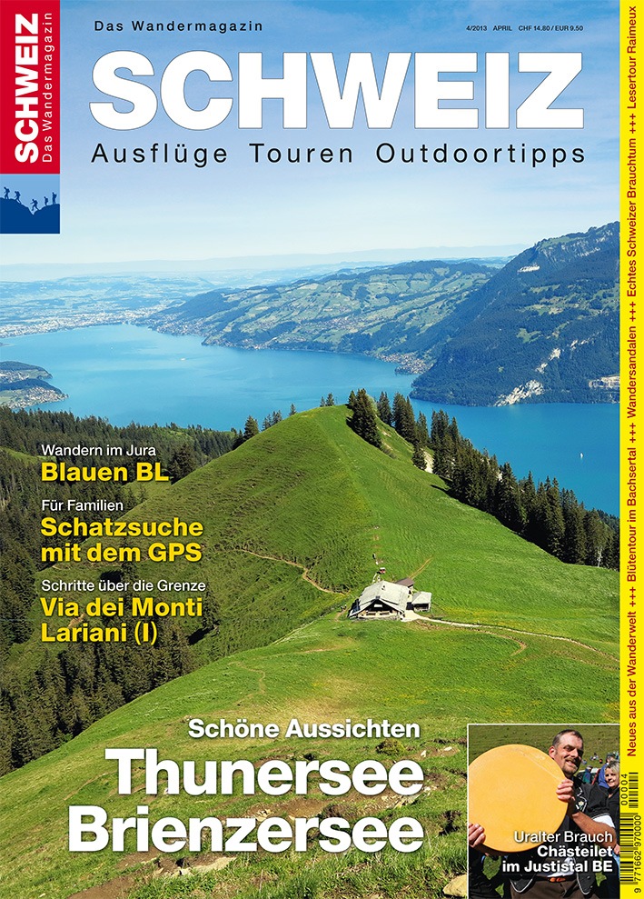 MedienmitteilungWandermagazin SCHWEIZ im April_2013: Thunersee - Brienzersee (BILD)2013-04-03T10:30:02Solothurn (ots) - Schöne Aussichten Die Region um die Berner Oberländer Seen strotzt nur so von Naturschönheiten. Unten herrscht ein mildes Voralpenklima mit Palmen und Weintrauben, oben dominieren eisige Welten die Szenerie. Sie sind ein Paradies für Gipfelstürmer, die sich an den grossartigen Panoramen nicht genug satt sehen können. Wer nicht so hoch hinaus will, nimmt den neuen, 56 Kilometer langen Panoramaweg um den Thunersee mit seinen spektakulären Hängebrücken unter die Füsse. Chästeilet im Justistal Mitte September werden im Berner Justistal die im Sommer hergestellten Alpkäse nach einem jahrhundertealten Ritual auf die Bergrechtsbesitzer aufgeteilt. Jahr für Jahr pilgern dazu Tausende von Gästen aus Nah und Fern auf den Spycherberg, um bei diesem einzigartigen Spektakel der Älpler mitzufeiern. Was macht ein Geocacher? Er spielt mit milliardenteurem Hightech. Gemeint ist GPS, das Global Positioning System der US-Armee. Und dieses wird benutzt, um von anderen Geocachern versteckte Schätze zu suchen. Das Wandermagazin zeigt, wie das geht. Die Ausgabe «Thunersee - Brienzersee» des Wandermagazins SCHWEIZ ist ab sofort an allen grossen Kiosken oder direkt beim Rothus Verlag erhältlich. Telefon 032/626'40'30, wandermagazin@rothus.ch. Preis: CHF 14.80. Kontakt: Rezensionsexemplare gratis erhältlich bei: Permalink: