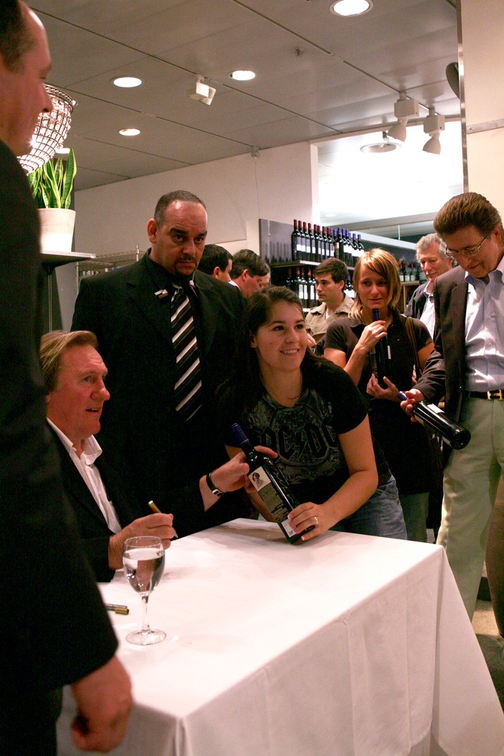 für seine Fans seine Weinflaschen. Der Andrang war gross, mehrere
