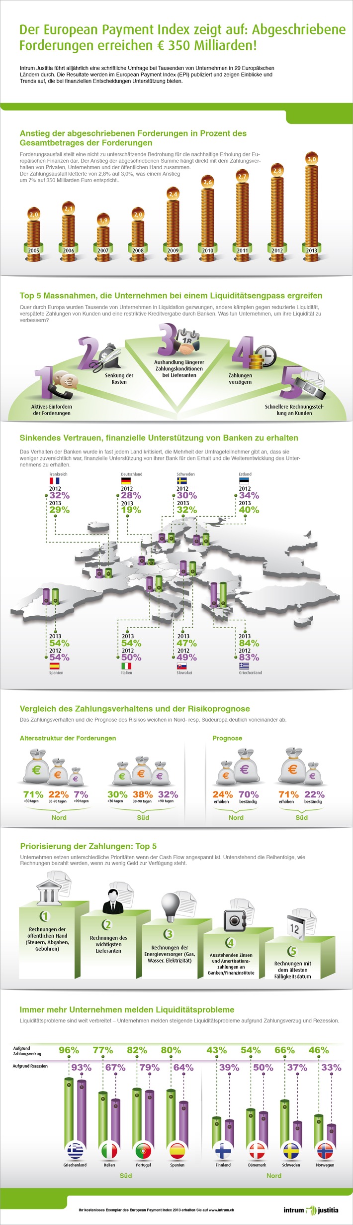 European Payment Index 2013 - aktuelle Studie von Intrum Justitia: Abgeschriebene Forderungen von Schweizer Unternehmen erreichen fast 8 Milliarden Schweizer Franken (BILD)