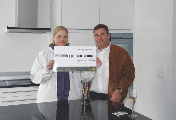 MedienmitteilungEindrücklicher Erfolg bei SWISSHAUS: Bereits 3000 Häuser gebaut2011-10-31T16:13:14Gallen (ots) - Im 15. Jubiläumsjahr ist die Freude besonders gross in der SWISSHAUS-Filiale in Montagny bei Yverdon. Denn am 14. Oktober 2011 ist bei herrlichem Herbstwetter das 3000. Haus vom Einfamilienhausspezialisten SWISSHAUS an seine Bauherrin, Dominique Bourquin, in Veyrier (GE) übergeben worden. Marc Feiss, Bauleiter von SWISSHAUS, überreicht ihr hierbei zur grossen Überraschung einen Scheck und stösst gemeinsam mit ihr auf diesen Erfolg an. Etwas Dauerhaftes. Etwas Eigenes. Etwas Bezahlbares. Etwas Wertbeständiges. Und mehr Lebensqualität. Das wünschen sich alle, die von einem Eigenheim träumen. Ein Traum ist das eine. Die Pläne und deren Umsetzung das andere. Grosse Freude Über 125 Hausprojekte in knapp 3½ Jahren - und das alleine in der Westschweizer Filiale. Und nun die 3000. Hausübergabe von SWISSHAUS am äussersten Zipfel der Schweiz, in Veyrier. Die Überraschung ist gross bei Dominique Bourqin, einer alleinerziehenden Mutter eines Teenagers und Lehrerin an der Ecole de Commerce. Strahlend und bescheiden freut sie sich: "Damit habe ich überhaupt nicht gerechnet. Das ist ja wunderbar. Vielen Dank für die schöne Überraschung und den grossen Einsatz von Marc Feiss." Den Betrag, des von ihm überreichten Ausstattungsschecks über CHF 3000.-, wird sie in neue Möbel investieren. Der Wunsch nach einem Eigenheim war gross, die Umsetzung wollte sie einem erfahrenen Baupartner überlassen. "Ich verstehe nichts vom Bauen. Aber die Hausidee des Modells HERA von SWISSHAUS hat mir auf Anhieb gefallen." Erfahrung, Qualität und ein seriöses Preis-Leistungsverhältnis sind weitere Gründe, die für die Wahl von SWISSHAUS sprechen. Das 3000. Haus steht in der Romandie Filialleiter Werner Harnisch ist stolz, dass nach dem strengen Filialaufbau und Zusammenstellen seines Teams in der Westschweiz die 3000. Hausübergabe nun auf ein Hausprojekt aus der Romandie gefallen ist. "Der Aufbau einer neuen Filiale ist eine Herausforderung. Es braucht vor allem Geduld und Zeit, die richtigen regionalen Partner und Mitarbeiter zu finden." Die Unterstützung aus dem Mutterhaus in St.Gallen ist jedoch gross. "Wir freuen uns sehr, dass wir diesen grossartigen Erfolg in unserem 15. Jubiläumsjahr mit einer Hausübergabe in der Romandie feiern dürfen", so Urs Loop, Leiter Qualitätssicherung, aus St.Gallen. "Solch tolle Erfolgsmeldungen motivieren Mitarbeiter im nicht immer einfachen Baualltag." Alles aus einer Hand Die SWISSHAUS-Philosophie greift und überzeugt: Die Ideen und Bedürfnisse der Bauherrschaft stehen im Zentrum einer realistischen Planung und seriösen Umsetzung. Ein kompetentes Team, bestehend aus Projektleiter, Bauleiter und Hochbauzeichner begleitet engagiert durch die verschiedenen Bauphasen. Gebaut wird in Holz- oder Massivbauweise und wenn immer möglich mit regionalen Partnern. Eine individuelle Planung und Beratung, eine klare Preisabsprache zu einem möglichst frühen Zeitpunkt, damit die Bauherrschaft weiss, wie viel das Haus bei Schlüsselübergabe kostet, sowie ein ausgewogenes Preis-Leistungs-Verhältnis, tragen nebst kompetentem Engagement rund um den Bau zur angestrebten Zufriedenheit der Kunden bei. HERA so individuell wie seine Bewohner Es ist ein gefälliges, klassisches Haus mit einer modernen Umsetzung, loftartigem grosszügigen Grundriss im Erdgeschoss und einer in den Wohnraum integrierten, offenen Küche. Ein Büro und Gäste-WC mit Dusche runden das Raumangebot im Erdgeschoss ab. Im Obergeschoss befinden sich drei Schlaf- und ein Badezimmer. Die Tochter von Dominque Bourquin kann es kaum erwarten und hat sich gewünscht, so schnell als irgend möglich im neuen Heim zu übernachten. Und so hat die Hausherrin kurzerhand schmunzelnd beschlossen: "Alles funktioniert. Wir werden heute das erste Mal hier schlafen - auf einer Luftmatratze." Definitiv eingezogen wird in rund 10 Tagen. SWISSHAUS in Zahlen 15 Jahre Erfahrung, 135 Mitarbeiter, 34 Kundenberater, über 2000 regionale Partner und Handwerksbetriebe, Zusammenarbeit mit rund 250 Bank-/Finanzinstitute, 5 Filialen (Lenzburg, Niederwangen, Hochdorf, Montagny, Götzis (AT)) und nun über 3000 gebaute Häuser. Zum Unternehmen Die SWISSHAUS AG ist mit über 250 gebauten Häusern pro Jahr Schweizer Marktführer im Bau von Einfamilienhäusern. Als Generalunternehmer bietet SWISSHAUS den Kunden individuelle Architektur basierend auf verschiedenen Hausideen, die als inspirierende Grundidee für die Realisierung der Traumhäuser dienen. Sowohl die SWISSHAUS AG als auch ihre Fachpartner bringen viel Erfahrung in ihren Fachgebieten mit, ob im Massiv- oder Holzbau. Dabei setzen sie auf intelligente, neueste Technik, die nachhaltiges Bauen erst ermöglichen. Nebst Festpreisgarantie, regionaler Verankerung, energieeffizienter Bauweise und einem vielfältigen Service-Angebot, sorgt SWISSHAUS auch für eine persönliche Betreuung von der Baulandsuche bis zur Schlüsselübergabe. Dabei steht der Kunde stets im Mittelpunkt. Kontakt: SWISSHAUS AG Permalink: