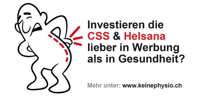 Um auf die aktuelle Problematik aufmerksam zu machen, startet physioswiss mit dem heutigen Tag in allen Medienplattformen eine Schweiz weite Kampagne unter dem Titel: "Investieren die CSS & Helsana lieber in Werbung, als in die Grundversorgung?". Man kann nicht teure schönredende Werbung schalten und sich in der Kommunikation mit den Leistungserbringern gegenteilig verhalten.