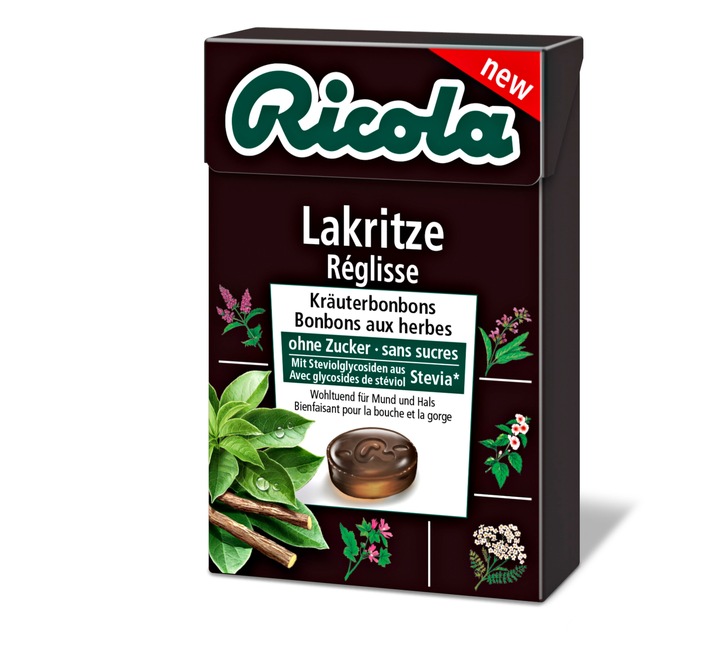 MedienmitteilungRicola lanciert Lakritze in der Deutschschweiz (BILD)2013-08-29T12:00:06Laufen (ots) - Herrlich mild und angenehm süss, vereint Ricola Lakritze die einzigartige Ricola 13 Kräutermischung, hochwertige Lakritze und eine Spur Sternanis zu einem wohltuenden und genussvollen Geschmackserlebnis. Die neuste Innovation von Ricola schmeckt nicht nur Lakritze-Liebhabern: eine harmonische Kombination von milder Lakritze mit der wohltuenden und erfrischenden Ricola 13 Kräutermischung. Diese besondere Komposition sorgt für einen lang anhaltenden Genuss und ist dank ihrer ausgewählten Zutaten wohltuend für Mund und Hals. Damit passt die neue Bonbonkreation bestens zur Herbstzeit und ist ein idealer Begleiter für unterwegs. Lakritze wird aus der Süssholz-Wurzel «Glycyrrhiza glabra» gewonnen. Gesüsst sind die sanft-cremigen Lakritze Bonbons mit kalorienfreien Steviol-Glycosiden aus der Stevia-Pflanze. Der einzigartige Lakritze-Geschmack wurde speziell für Ricola entwickelt, und Ricola Lakritze wurde bereits erfolgreich in diversen anderen europäischen Ländern eingeführt. Aufgrund dieser positiven Erfahrungen sind die Bonbons nun auch in der Schweiz - der Ricola-Heimat - in der praktischen Box erhältlich. Ricola Lakritze: - Eine perfekte und einzigartige Harmonie von Kraft und Weichheit: cremige und süsse Lakritze, feine Sternanis und die bewährte Ricola 13 Kräutermischung - Wohltuend und erfrischend für Mund und Hals - Gesüsst mit Steviol-Glycosiden aus der Stevia-Pflanze - Ab August 2013 schweizweit erhältlich www.ricola.com Kontakt: Ricola AG Permalink: