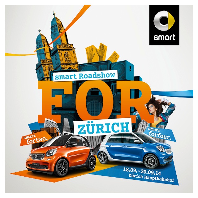Medienmitteilungsmart FOR Zürich / smart feiert die Lebensfreude in Zürich2014-09-12T18:22:00Schlieren (ots) - Vom 18. bis 20. September im Hauptbahnhof Zürich: smart präsentiert gemeinsam mit Rapper SKOR lokale Musik-Acts, Spiele, Shows und Performances. "smart FOR Zürich" lautet das Motto, mit dem die Marke die urbane Lebensfreude jedem erlebbar machen möchte. Neben SKOR stehen unter anderem Dabu Fantastic und Knackeboul auf der Bühne. Das kostenlose Event ist die achte Station einer europaweiten smart Roadshow durch 15 Städte. Zürich - Die urbane Lebensfreude ist in Zürich zuhause: Vom 18. bis 20. September macht die smart Roadshow im Zürcher Hauptbahnhof halt und feiert das Stadtleben mit einem spannenden und vielfältigen Programm aus Konzerten, Workshops und Performances. Die unbestrittenen Stars dabei: der neue smart fortwo und der neue smart forfour, die zum ersten Mal in Zürich live präsentiert werden. Das Motto "smart FOR Zürich" ist Ausdruck einer Haltung, die smart "FOR" nennt: nicht gegen, sondern "FÜR" etwas zu sein - "FÜR" mehr Lebensqualität in der Stadt, "FÜR" mehr Platz, "FÜR" mehr Mobilität, "FÜR" mehr Lebensfreude. FOR local heroes smart unterstützt Züricher Künstler, die Ihrer Stadtbevölkerung während der dreitägigen Roadshow eine ganze Reihe von gratis Konzerten und Live-Performance-Einlagen bieten. Rapper SKOR, der im vergangenen Juni sein erstes Solo-Album veröffentlicht hat, freut sich auf das Festival: "Als lokale Künstler lieben wir unsere Stadt und sehen uns als Teil der urbanen Lebensfreude. Umso mehr freuen wir uns, dass wir ein Fest von Züricher Acts für Zürich feiern dürfen." Neben Knackeboul und EKR runden weitere Rap- Legenden wie Steezo oder Semantik das HipHop Programm ab. Die Swiss Music Award Gewinner Dabu Fantastic feiern nach dem jüngsten Release ihres Albums "Hallo Hund" eine Renaissance des Mundartpops, 7 Dollar Taxi ihr zehn jähriges Bestehen und Wolfman als viel versprechende lokale Pop Hoffnung das grosse Finale der Roadshow. Neben hippen Beats und zahlreichen Konzerten bietet smart eine spektakuläre Parkour-Show. Die neuen smart Modelle Erstmals werden auch der neue smart fortwo und der neue smart forfour live in Zürich präsentiert. Dabei geht die Revolution in die nächste Runde - der smart fortwo wurde in nahezu allen Bereichen verbessert und ist deutlich komfortabler. Das smart typische Heckmotorkonzept wird erstmals auch im viersitzigen smart forfour angeboten. Eine unerreichte Wendigkeit und viele innovative Details garantieren noch mehr Spass in der Stadt. Bei der smart Roadshow können sich Besucher im Hauptbahnhof Zürich bereits Monate vor der offiziellen Markteinführung im November ein Bild von der neuen Generation machen. Internationale smart Roadshow Zürich ist ein Stopp einer europaweiten smart Roadshow. smart lädt die Bewohner von 15 europäischen Metropolen ein, gemeinsam die Lebensfreude ihrer Stadt zu feiern. Bis November 2014 macht die smart Roadshow noch Halt in: Amsterdam, Mailand, Rom, Paris, Barcelona, Madrid und Lissabon. #WhatAreYouFOR: smart fühlt den Puls der Schweizer Städte Mit der digitalen Plattform #WhatAreYouFOR animiert smart die Schweizer User, persönliche Botschaften zu verfassen und mit ihren Freunden zu teilen. Auf einer Heatmap werden die aktuellen Botschaften dargestellt und zeigen so im Verlauf der Kampagne die positiven Impulse regional auf. Die generierten Statements werden regelmässig ausgewertet und im Zusammenhang mit einer europäischen Studie zum Thema Urbane Lebensfreude in Europa publiziert. Main Acts smart FOR Zürich: Donnerstag, 18.09.2014 15.30 Uhr - Ikara & Didi 17.00 Uhr - Semantik 19.00 Uhr - Elijah 21.00 Uhr - SKOR Freitag, 19.09.2014 15.00 Uhr - Eki con el Italiano 17.00 Uhr - Paul das Pausenbrot 19.00 Uhr - Knackeboul 21.00 Uhr - Saalschutz Samstag, 20.09.2014 15.00 Uhr - Steezo 17.00 Uhr - 7 Dollar Taxi 19.00 Uhr - Dabu Fantastic 21.00 Uhr - Wolfman Geöffnet ist die smart Roadshow von Donnerstag bis Samstag von 10 bis 22 Uhr. Weiterführende Informationen finden sich hier: Mehr zur Roadshow: www.smart.com/smartroadshow Mehr zur FOR Markenkampagne: www.smart.com/FOR Mehr zu #WhatAreYouFor: www.whatareyoufor.ch Weitere Informationen von smart: www.media.daimler.com und www.smart.ch Kontakt: Artur Demirci Permalink: