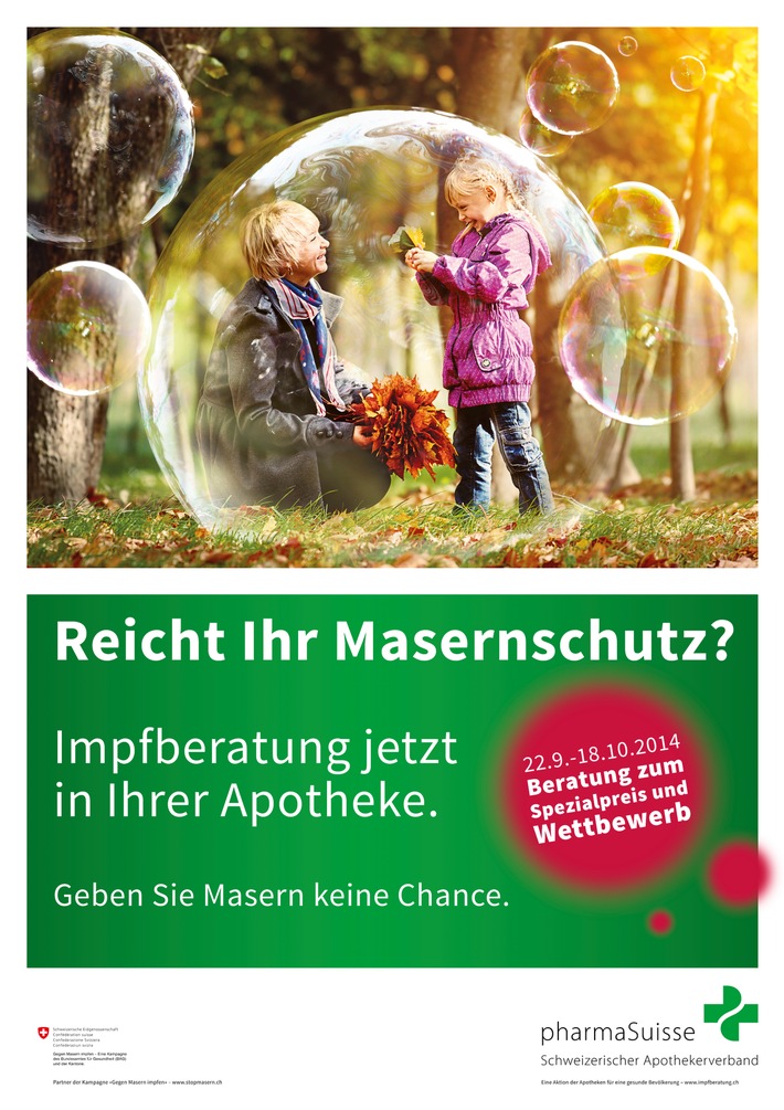 MedienmitteilungImpfberatungsaktion in der Apotheke: 22. September bis 18. Oktober2014-09-17T17:29:56Bern-Liebefeld (ots) - Die Schweizer Apotheker unterstützen den Bund im Kampf gegen die hochansteckenden Masern. Die Impfberatung in der Apotheke ist dabei nur eine von mehreren Massnahmen - die Apotheker nehmen ihre Aufgaben in der Prävention ernst und bereiten sich vor, zukünftig noch mehr Verantwortung für einen ausreichenden Impfschutz der Bevölkerung zu übernehmen. «Wenn wir höhere Durchimpfungsraten erreichen wollen, müssen wir die Apotheker involvieren - mit einer Zusatzausbildung, die bereits jetzt viele haben, sind sie für diese Aufgabe absolut qualifiziert.» Das sagt der Berner Kantonsarzt Jan von Overbeck. Bereits heute dürfen speziell ausgebildete Apotheker in einigen Kantonen (Fribourg, Solothurn, Zürich, Neuenburg, Basel-Landschaft und Tessin) unter bestimmten Bedingungen gesunde Erwachsene impfen. Die Apotheker sind bereit, in Zukunft noch mehr Verantwortung in diesem Bereich zu übernehmen, um die Strategie des Bundes und der Kantone zu unterstützen. Bereits jetzt leisten die Apotheker einen wertvollen Beitrag: mit ihrer Aktion vom 22. September bis zum 18. Oktober. In dieser Zeit informieren und beraten die Apotheker ihre Kunden zum Thema Impfen, erstellen und validieren ihre elektronischen Impfausweise, die dann für den Kunden jederzeit online verfügbar sind. Vergessene zweite Masernimpfung Das Wissen um den eigenen Impfstatus ist wichtig, insbesondere auch im Hinblick auf die Masern. Es kommt häufig vor, dass nur eine Impfdosis verabreicht und die zweite, für den Impfschutz essentielle, Dosis vergessen wurde. Als Krankheit kann Masern zu erheblichen Komplikationen wie Mittelohr- und Lungenentzündungen bis hin zu Gehirnentzündungen mit bleibenden Schäden oder sogar Tod führen. Für die Ausrottung der Masern in der Schweiz müssen mindestens 95 Prozent der Bevölkerung zweimal geimpft sein. Dieses Ziel hat sich der Bund bis Ende 2015 gesteckt. Mit ihrer Herbstaktion zum Thema Masernelimination unterstützen über 100 teilnehmende Apotheken den gemeinsamen Kampf von Bund und Kantonen gegen diese gefährliche Krankheit. Weitere Informationen und Pressebilder finden Sie auf: www.impfberatung.ch. pharmaSuisse setzt sich als Dachorganisation der Apothekerinnen und Apotheker schweizweit für optimale Rahmenbedingungen ein und informiert die Öffentlichkeit über Themen des Gesundheitswesens. Zudem sorgt der Verband für apotheker- und bevölkerungsbezogene Dienstleistungen wie beispielsweise eine fachgerechte pharmazeutische Beratung. Dem Verband gehören rund 5'500 Mitglieder an und sind 1'350 Apotheken angeschlossen. www.pharmasuisse.org Kontakt: pharmaSuisse Permalink: