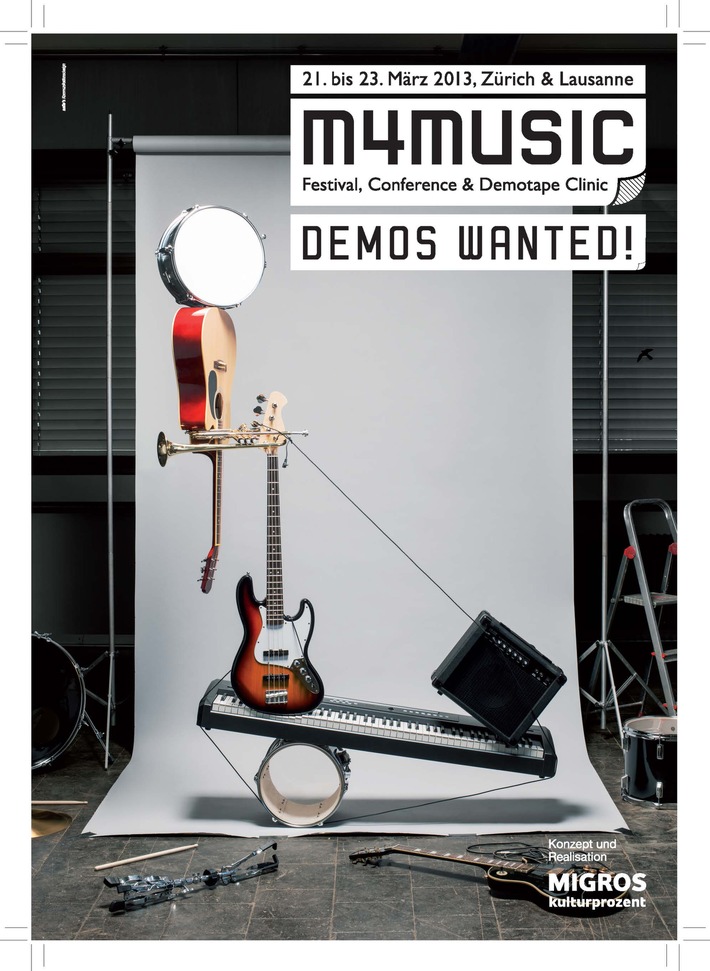 MedienmitteilungMigros-Kulturprozent: Ausschreibung Demotape Clinic 2013 / m4music sucht die besten Demos der Schweiz2012-11-14T11:15:00Zürich (ots) - Zum nunmehr 15. Mal schreibt m4music, das Popmusikfestival des Migros-Kulturprozent, die Demotape Clinic aus. Sie sucht die besten Songs ambitionierter Schweizer Bands und Künstler. Profis bewerten die spannendsten Beiträge am 22. und 23. März 2013 am Festival m4music. Musiker können sich bis zum 13. Januar 2013 auf www.demotapeclinic.ch anmelden. Zu gewinnen gibt es insgesamt 17'000 Franken und eine Veröffentlichung zusammen mit den besten Titeln auf der CD «The Best of Demotape Clinic 2013». Die Demotape Clinic ist einer der grössten und ältesten Bandwettbewerbe der Schweiz. Er hat sich durch die langjährige Tätigkeit des Migros-Kulturprozent als Förderer der Schweizer Musik sowohl bei den Künstlern als auch in der Industrie etabliert. Dieses Sprungbrett haben bereits Musiker wie Steff la Cheffe, Knackeboul und Domi Chansorn genutzt, um sich zu präsentieren und ein professionelles Feedback zu erhalten. Jahr für Jahr reichen bis zu 800 Künstler aus der deutschen, französischen und italienischen Schweiz ihre Songs ein. Der Wettbewerb richtet sich an Musiker der Kategorien Pop, Rock, Electronic und Urban. Eine Vorjury hört sich die eingereichten Songs an und wählt aus allen Einsendungen die besten Demos jeder Kategorie aus. Diese Künstler präsentieren sich dann an der Demotape Clinic Live-Session einer weiteren Jury von Branchenexperten, die jedes Demotape öffentlich beurteilt. In allen vier Kategorien vergibt die Jury zusammen mit der Fondation SUISA den mit je 3000 Franken dotierten Fondation-SUISA-Award. Der hoffnungsvollste Künstler aus den vier Sparten erhält zusätzlich die Auszeichnung «Demo of the Year» und damit weitere 5000 Franken. Im Anschluss an den Wettbewerb produziert m4music ausserdem die CD «The Best of Demotape Clinic 2013». Infobox Ambitionierte Schweizer Bands und Künstler der Kategorien Pop, Rock, Electronic und Urban können sich ab sofort bis am 13. Januar 2013 für den Wettbewerb anmelden. Die Demotape Clinic Live-Session findet am 22. und 23. März 2013 im Schiffbau Zürich während des Festivals m4music des Migros-Kulturprozent statt (21. bis 23. März 2013). Parallel zur Demotape Clinic gibt es Podiumsdiskussionen, Vorträge und Workshops für Musiker und Popkulturinteressierte. Der Besuch dieser Veranstaltungen ist kostenlos. Details und Anmeldung unter www.demotapeclinic.ch und www.m4music.ch * * * * * * Das Migros-Kulturprozent ist ein freiwilliges, in den Statuten verankertes Engagement der Migros für Kultur, Gesellschaft, Bildung, Freizeit und Wirtschaft. www.migros-kulturprozent.ch Kontakt: Auskünfte an Medienschaffende: Permalink: