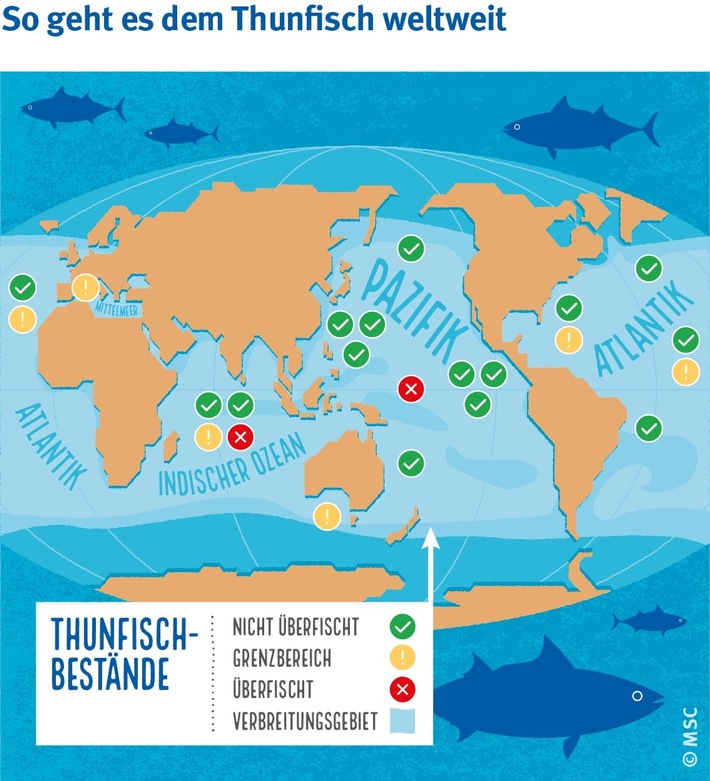 MedienmitteilungAm 2. Mai ist Weltthunfischtag - und es gibt endlich gute Nachrichten!2025-05-02T00:00:16Berlin (ots) - Sperrfrist: 02.05.2025 00:00 Bitte beachten Sie, dass diese Meldung erst nach Ablauf der Sperrfrist zur Veröffentlichung freigegeben ist. Thunfisch ist buchstäblich in aller Munde. Fast zwei Drittel (63,3 %) der Deutschen essen mindestens einmal im Monat Thunfisch, so das Ergebnis einer repräsentativen Umfrage, die das Marktforschungsinstitut Appinio im Auftrag des MSC (Marine Stewardship Council) vom 4. bis 7. April 2025 unter 1201 Personen in Deutschland durchgeführt hat. Auch weltweit betrachtet ist Thunfisch eine der nachgefragtesten Fischarten überhaupt. Der MSC, eine Nonprofit-Organisation, die für nachhaltige Fischerei und gegen Überfischung kämpft, setzt sich daher vielen seit Jahren mit besonderem Nachdruck für mehr Nachhaltigkeit in der Thunfischfischerei ein. So geriet einiges Bewegung - und mündete nun endlich in einem großen Sprung hin zu gesünderen Beständen, verantwortungsvollerer Fischerei und mehr Nachhaltigkeit in den Supermärkten und somit auf dem Teller. Hier also fünf Good News zum Weltthunfischtag 2025: 1. Gute Nachricht aus dem Meer: Die meisten Thunfischbestände sind nicht überfischt Während die weltweite Überfischung weiter zunimmt, zeigt sich beim Thunfisch ein anderes Bild: Seine Bestände entwickeln sich deutlich positiv - und das weltweit! Von 23 kommerziell genutzten Thunfischbeständen gelten aktuell nur noch zwei (8,6 %) als überfischt. Eine Verbesserung um rund 10 % allein im Vergleich zum Vorjahr. Besonders relevant für VerbraucherInnen in Deutschland, die Thunfisch hauptsächlich aus der Dose essen: Der Echte Bonito, die Thunfischart, die für Dosenthunfisch verwendet wird, ist in keinem Ozean überfischt. Ein Beleg dafür, dass nachhaltige Fischerei wirkt. 2. Positiver Trend an Bord: Immer mehr Thunfischfänge kommen aus nachhaltiger Fischerei Der Anteil von Thunfischfängen aus nachhaltiger Fischerei ist in den letzten Jahren merklich gestiegen: Während heute 53 % aller Thunfischfänge aus umweltverträglicher, MSC-zertifizierter Fischerei kommen, waren es 2018 nicht einmal halb so viele (22 %). Mehr als 70 konkrete Verbesserungen zum Schutz der Meere und Thunfischbestände haben diese Fischereien in den letzten vier Jahren umgesetzt. Was hinter diesem Wandel steckt? Eine bessere internationale Regulierung des Thunfischfangs, Forschung und Investitionen in umweltfreundlichere Fangmethoden, bessere Kontrollen und ein Anreiz für die Fischereien zu mehr Nachhaltigkeit, der vom Einzelhandel und den Verbrauchern ausgeht. 3. Großer Schritt im deutschen Einzelhandel: Der Anteil von nachhaltigem Thunfisch im Supermarkt ist auf 82% gestiegen Nachhaltigkeit wirkt - und verändert die Branche messbar. Nach Jahren des Umdenkens stammt 2025 erstmals der Großteil (82 Prozent) des im deutschen Einzelhandel verkauften Thunfischs (Produktkategorien Konserven, Tiefkühlung und Kühlung) aus nachhaltiger Fischerei. Der deutsche Einzelhandel wird damit zum weltweiten Vorreiter in Sachen Thunfisch-Nachhaltigkeit. Waren die Markenhersteller Followfood, Hawesta und FishTales schon länger zu 100 Prozent auf nachhaltigen, MSC-zertifizierten Thunfisch umgestiegen, haben nun auch die großen deutschen Supermärkte und Discounter mit ihren so wichtigen, weil verkaufsstarken, Eigenmarken nachgezogen. Das ist weltweit einmalig und ein Meilenstein für verantwortungsvollen Thunfischkonsum. 4. Bezahlbare Vielfalt für Verbraucher Der wachsende Anteil nachhaltiger Thunfischprodukte erhöht auch Auswahl und Produktvielfalt für nachhaltigkeitsbewusste Köche und Köchinnen. Ob für den schnellen Salat mit Dosenthunfisch oder die raffinierte Poke Bowl mit mariniertem Gelbflossenthunfisch: das hiesige Thunfischsortiment ermöglicht mittlerweile eine nachhaltige Wahl für jeden Anspruch - und auch für jeden Geldbeutel ist etwas dabei. Aber aufgepasst bei Aktionsware und Sonderangeboten: Auch hier sollten Verbraucher nicht auf eine nachhaltige Herkunft des Produktes verzichten! Die erkennt man zum Beispiel am blauen MSC-Siegel. 5. Thunfisch ist gesund: Aktuelles zu Nährwerten, Proteinen und Quecksilber-Risiko Laut aktueller Umfrage des Marktforschungsinstituts Appinio im Auftrag des MSC nehmen 63% der Deutschen Thunfisch als "gesund" (50,3 Prozent) und/oder als "hochwertige Proteinquelle" (40,4 Prozent) wahr. Tatsächlich hat Thunfisch mit 22 bis 29 g Eiweiß pro 100 g Fisch einen höheren Proteingehalt als die meisten anderen Fischarten. Dazu kommen wertvolle Omega-3-Fettsäuren, Vitamine (B3, B12, D) sowie Selen, Jod und Eisen - gut für Herz, Kreislauf, Immunsystem und Stoffwechsel. Praktisch: Diese Nährstoffe bleiben auch in der Dose erhalten. Auch für die Verbraucher, die durch das Thema Quecksilberbelastung verunsichert sind, gibt es gute Nachrichten: Für den Echten Bonito - den üblichen Thunfisch in der Dose - zeigten jüngste Tests unbedenkliche Werte bei allen Dosenproben auf dem deutschen Markt5. Kleinere, kurzlebigere Thunfischarten wie der Echte Bonito laufen grundsätzlich weniger Gefahr, Schadstoffe anzureichern, als große Arten wie etwa der Blauflossenthunfisch. Aber auch für die größeren Thunfischarten wären hohe Verzehrmengen nötig, um an ein gesundheitsgefährdendes Belastungsniveau durch Quecksilber zu kommen. Hohe Verzehrmengen wiederum sind schon aus ökologischer Sicht tabu: Damit Thunfisch ein verlässlicher Nährstofflieferant für die Weltbevölkerung und für zukünftige Generationen bleibt, sollten wir ihn als Delikatesse sehen und verhindern, dass seine Bestände überfischt werden. Nur gesunde Bestände sichern gesunde Ernährung! Quelle und weitere Informationen: MSC Thunfisch-Bericht 2025 Fotos und Infografiken: Download Anmerkungen: Thunfisch im Einzelhandel: Wie die einzelnen Markenhersteller und Supermärkte im Thunfischranking abgeschnitten haben, lesen Sie auf Seite 16 im MSC Thunfisch-Bericht 2025