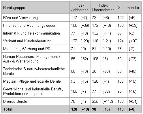 Medienmitteilungjobpilot-Index® steigt auf 113 Punkte / Kein Sommerloch für den Online-Stellenmarkt. Zunahme um 8%2001-08-30T22:00:00Zürich (ots) - Querverweis auf Grafik: www.newsaktuell.ch/d/galerie.htx?type=ogs Die Fachhochschule Solothurn Nordwestschweiz und jobpilot.ch präsentieren die Sommer-Zahlen des jobpilot-Index. Der Gesamtindex steigt im Juli auf 113 Punkte und bestätigt dem Schweizer Online-Stellenmarkt damit ein konstantes Wachstum. Die im Internet ausgeschriebenen Stellen nahmen gegenüber der Basis 100 im Januar um 13% zu und gegenüber April um 8%. Erkennbar wird auch die Etablierung der Online-Stellenmärkte. 19% mehr Stellen als im April wiesen die Jobsites aus, während die Unternehmen auf eigenen Sites 16% weniger Stellen anboten. Auch gewinnt der Online-Bereich Anteile gegenüber Print. Der Manpower-Index, welcher die Stellenanzeigen in diesem Bereich zählt, ist von April bis Juni um 4.6 auf 77.9 Prozentpunkte gesunken. Jobsites legen zu, Stellenangebote auf Unternehmens-Sites rückläufig Der Gesamtindex steigt aufgrund einer starken Zunahme der Stellen bei den Jobbörsen, und zwar um 19 Punkte (seit Januar 20 Punkte). Die massive Abnahme des Unternehmensindex um 16 auf 98 Punkte (im April plus 14 Punkte), lässt vermuten, dass die Unternehmen trotz schlechterer Wirtschaftslage etwa in gleichem Umfang über Internet rekrutieren. Dies tun sie allerdings vermehrt über Jobsites als neutrale Plattformen als über die eigene Homepage. Es muss jedoch berücksichtigt werden, dass die Basis für den Unternehmensindex zahlenmässig kleiner ist und sich damit volatiler verhält als der Jobsite-Index. Online gewinnt, Print verliert weiter Die Rekrutierung verlagert sich zusehends vom Print- in den Online-Bereich. Dies belegt der Vergleich mit dem Manpower-Index. Anfangs Jahr noch bei fast 90 Punkten, lag dieser Wert im April bei 82.5 und im Juni bei 77.9 Punkten. Ähnliches ermittelt die Statistik der Wemf (AG für Werbemittelforschung), die für Juli 2001 eine Einbusse der Stelleninserate in der Schweizer Tagespresse um 19,8% gegenüber Juli 2000 kommuniziert. Das Wachstum im Internet liegt also deutlich über dem im Print-Bereich. Finanz- und Controlling gefragt, IT und Marketing stagnieren, Technik und Naturwissenschaften in der Baisse Am meisten zugelegt haben die Berufsgruppen Finanzen und Rechnungswesen (+39 Punkte) und Verkauf und Kundenberatung (+20), und zwar auf den Jobsites und den Homepages der Unternehmen, was mit einer Nachfrage nach Berufsgruppen zusammenhängen könnte, die den Unternehmenserfolg sehr unmittelbar günstig zu beeinflussen vermögen. Eine Zunahme verzeichnet auch die Gruppe Büro und Verwaltung (+6). Bei den Diversen Berufen ist die Zunahme im Wesentlichen ein erhebungstechnischer Effekt, da einige Unternehmen ihre Recruiting-Sites umstrukturierten. Stabil ist die Lage bei den Berufsgruppen Marketing, Werbung und PR (-2) sowie Informatik und Telekommunikation (-3). Der im ersten Quartal festgestellte massive Rückgang bei der Gruppe Marketing, Werbung und PR ist etwas gestoppt. Die Abnahme des IT-Bereichs korrespondiert mit den Meldungen in der Presse über Stellenabbau und Einstellungs-Stopps in diesem Sektor. Deutliche Abnahmen verzeichnen die Berufsgruppen Technische & naturwissenschaftliche Berufe (-40), Human Resource Management/Aus- & Weiterbildung (-23), Gewerbliche Berufe/Produktion und Logistik (-16) und selbst das Feld Medizin, Pflege und soziale Berufe (-10). Download Pressemitteilung lang, weitere Grafiken und Informationen zur Erhebung unter: www.jobpilot-index.ch Kontakt: jobpilot Switzerland AG Permalink: