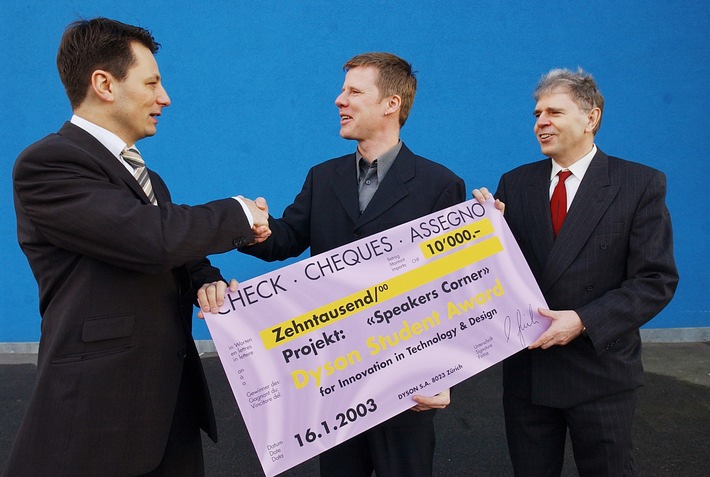 MedienmitteilungSperrfrist: Belohnung des Erfindergeistes: "Dyson Student Award" an ETH-Studenten verliehen2003-01-16T22:00:00Freiburg (ots) - Sperrfrist: 16.1.2003, 21.00 Uhr - nach Preisverleihung Querverweis: Die Bilder wurden durch Photopress über das Satellitennetz von Keystone verbreitet (Siehe auch www.photopress.ch und www.newsaktuell.ch/d/galerie.htx?type=obs) Im Rahmen des Schweizerischen Marketing Tages in Freiburg verlieh der britische Haushaltgerätehersteller Dyson erstmals in der Schweiz den "Dyson Student Award". Mit diesem Preis werden Produkte-Entwickler für innovative und kreative Lösungen bezüglich Technologie und Design ausgezeichnet. Zugelassen waren Studenten von Hochschulen und Fachhochschulen. Die Jury-Mitglieder, bestehend aus namhaften Persönlichkeiten aus den Bereichen Technologie, Mechanik, Design und Marketing, entschieden sich für das "SpeakersCorner"-Projekt, ein multimediales, digitales Rednerpult, welches sämtliche gebräuchlichen analogen und digitalen Medien in einer Präsentation zu nutzen und ohne weitere Nachbearbeitung über das Internet verfügbar machen kann. Bei der Entwicklung wurde besonders Wert auf einfachste, intuitive Bedienung gelegt, um das Produkt einem möglichst grossen Benutzerkreis zugänglich zu machen. Gewinner des Dyson Student Award 2003 in der Höhe von 10'000.-- Franken ist eine Gruppe von Studenten der ETH Zürich, die unter der Projektleitung von Uwe Werner, wissenschaftlicher Mitarbeiter beim Zentrum für Produktentwicklung, und mit Unterstützung der Firma Tribecraft AG (Zürich) den "SpeakersCorner" bis zum heutigen Prototyp entwickelten. Neben der finanziellen Unterstützung offeriert die Firma Dyson, die selbst als Innovationsschmiede gilt, auch ein Coaching-Programm. Der Award soll in der Schweiz künftig jährlich verliehen werden. Kontakt: Theresa Ryser Permalink: