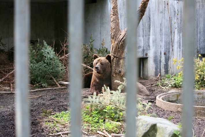 wird via EQImages verbreitet -Nach 23 Jahren hinter Gittern wird Bär Mario heute Nacht in einen grosszügigen Bärenpark gebracht. Vor den Medien im aargauischen Zoo Hasel kritisierte die Tierschutz-Organisation VIER PFOTEN scharf die Tierschutz-Verordnung, die solch tierquälerische Haltung zulässt. Bär Bruno durchstreifte auf seiner zweimonatigen Alpenwanderung 600 Quadratkilometer. Zoobär Mario ist in seinen 23 Lebensjahren nie über den 160 m2-Käfig hinaus gekommen, den ihm der Haselzoo in Rüfenach (AG) zubilligt. Jahrelang war Mario sogar in einer noch kleineren Grube versenkt. "Die Leidensgeschichte von Mario steht symbolisch für eines der grössten Tierschutzprobleme im Land; dass nämlich Politik und Behörden solche jämmerlichen Haltungen tolerieren", sagte VIER PFOTEN-Geschäftsführer Marcel Odermatt an der Medienorientierung vor dem Bärenkäfig. Die Tierschützer formulierten konkrete Forderungen am Beispiel des Bären: "Statt den völlig ungenügenden Mindestanforderungen müssen die Behörden Massstäbe für eine gute Praxis der Tierhaltung definieren. Für einen Bären heisst das 3000 m2 Platz, Wald, Wasser zum Schwimmen, Bäume zum Klettern und Rückzugsmöglichkeiten." Nationalrätin Barbara Marty (ZH) zitierte die rechtlichen Grundlagen für die Wildtierhaltung. "Nach der Diskussion um das neue Tierschutzgesetz erwarten wir heute vom Bundesrat, dass er die Verordnung im Sinne einer artgerechten Tierhaltung präzisiert", sagte die Politikerin. Der Verordnungsentwurf wird nächste Woche veröffentlicht. Für den Bären Mario ist das jetzt bedeutungslos. Er zieht heute Nacht um. VIER PFOTEN hat die Verantwortung für den Bären übernommen und im Alternativen Bärenpark Worbis (D) einen Platz gefunden, wo Mario seine natürlichen Instinkte wieder entdecken kann. "Er lernt erst einmal ganz allein und in Ruhe, ein Bär im Wald zu sein", schilderte Parkleiter Uwe Lagemann die Eingewöhnung. Später wird Mario auf elf Artgenossen und ein Rudel Wölfe treffen, die das 40'000 m2 grosse Wald- und Wiesen-Areal zusammen bewohnen. Der Transport des Tieres wurde wegen der hohen Tagestemperaturen auf die Nacht verlegt. Die Bären-Fachleute von Worbis haben bereits 14 Bären erfolgreich in den Park chauffiert. Der Tierarzt des Bärenpark begleitet die Reise und untersucht Mario vorgängig. "Dieser Bär hier wird es bald viel besser haben", freute sich Marcel Odermatt. "Ich gönne ihm das von Herzen. Doch bis all die anderen Wildtiere in Schweizer Privatzoos genug gesetzlichen Schutz haben, werden leider noch viele Besucher die stereotypen, krankhaften Bewegungen der gefangenen Tiere beobachten müssen." Kontakt: Mike Weibel Permalink: