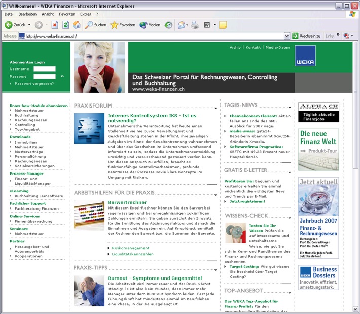 WEKA Verlag: Innovatives Finanz-Online-Portal für Verantwortliche in Rechnungswesen, Controlling und Buchhaltung
