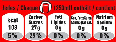 findet sich die Angabe zum Kaloriengehalt des Getränks. Auf der