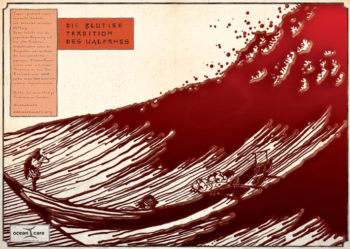 unter: http://www.presseportal.ch/de/pm/100000082 -23.-27. Juni 2008: Internationale Walfangkonferenz in Santiago de Chile Anfang Februar hat Japan in den Meeresschutzgebieten der Antarktis den Walfang erneut aufgenommen. Als Sinnbild der Ungeheuerlichkeit ging ein Foto um die Welt: Es zeigt, wie eine Zwergwalmutter und ihr Junges über eine Rampe ins Innere eines Walfangschiffes gezerrt werden. Japan ist sich bewusst, wie brisant dieser Walfang in der Antarktis ist, und bietet der Internationalen Walfangkommission (IWC) auf ihrer diesjährigen Tagung in Santiago de Chile einen "Kuhhandel" an. Die Japaner wollen auf einen Teil ihrer selbst bestimmten Fangquote in der Antarktis verzichten, wenn sie im Gegenzug die Erlaubnis erhalten, Wale vor den eigenen Küsten zu töten. Sollte die Walfangkommission Ende Juni auf Japans Vorschlag eingehen, würde dies das internationale Walfangverbot durch die Hintertür faktisch aus den Angeln heben und der willkürlichen Jagd auf Wale Tür und Tor öffnen. Denn noch ist eine Einigung der Mitgliedstaaten hinsichtlich der Rahmenbedingungen für eine kontrollierte Nutzung der Meeressäuger nicht in Sicht - und es bestehen auch keinerlei Sanktionsmöglichkeiten zur Ahndung von Verstössen gegen das weltweite Walfangverbot, das seit 1986 in Kraft ist. Gegen Japans unverfrorene Ausweitung des Walfangs engagiert sich die Schweizer Organisation OceanCare. Auf der Internationalen Walfangkonferenz setzt sie sich dafür ein, dass Verstösse gegen das Walfangverbot rigoros geahndet werden. Eine Übersicht der wichtigsten Initiativen von OceanCare finden Sie unter http://www.oceancare.org/de/downloads/IWC_OceanCare_1996-2007.pdf Das zähe Ringen um den Schutz der bedrohten Meeresgiganten geht Ende Juni weiter. In einem IWC-Blog ( http://blog.oceancare.org/ ) wird OceanCare aus Santiago de Chile über den Verlauf der Verhandlungen berichten. Ogilvy & Mather Frankfurt entwickelt Kampagne für OceanCare Die langjährige Arbeit von OceanCare zum Schutz der Wale bot Ogilvy & Mather Frankfurt, Teil der deutschen Ogilvy-Gruppe, Inspiration genug, sich dem Thema aus kreativer Sicht zu widmen. Die Werbeagentur entwickelte für OceanCare eine Kampagne, die Japans aktuelle Walfangaktivitäten thematisiert. Da sich Japan dabei auf eine Jahrhunderte alte Tradition beruft, rufen die Anzeigen und Poster dazu auf, diese blutige Tradition endlich zu beenden. Die Bildmotive sind im Stil traditioneller japanischer Farbholzschnitte (Ukiyo-e) gestaltet. Allerdings wurde anstelle der üblichen Tusche Walblut als Farbe verwendet, um so einen ebenso deutlichen wie drastischen Hinweis auf die blutige Realität des kommerziellen Walfangs in Japan herzustellen. Kontakt: OceanCare Permalink: