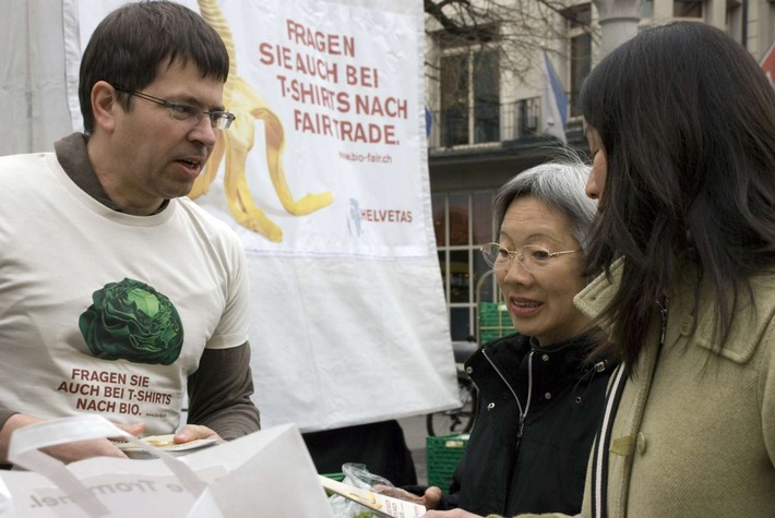 die Schweizer Entwicklungsorganisation Helvetas heute Passanten auf