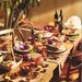handbemalten, bunten Schälchen, machen sie den gedeckten Tisch zum