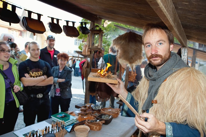 Der mittelalterliche Markt findet dieses Jahr bereits zum fünften Mal statt. Rund 35 Stände sind im Schlosshof und im Ritterhaus verteilt. Neben Unterhaltung und Demonstrationen von alten Handwerkstechniken bieten viele der historisch gewandeten Handwerker auch Aktivitäten für Kinder und Erwachsene an. Den Besucherinnen und Besuchern werden hautnah historisches Handwerk in authentischer Umgebung vermittelt. Mit dabei ist auch der Verein für experimentelle Archäologie, ExperimentA mit einer Drehbank und einem Webrahmen.