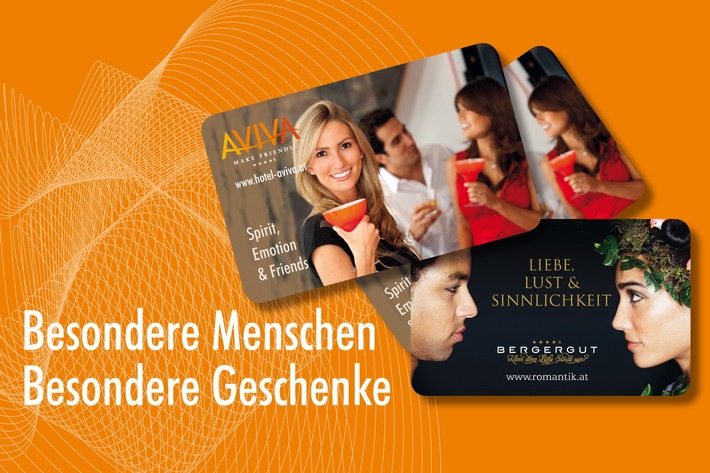 MedienmitteilungEINE Geschenkidee und ALLE werden begeistert sein - BILD2012-11-23T08:14:37Brandneu & begehrenswert: Die AVIVA-BERGERGUT-CARD ist da! Ihr persönliches Geschenk, welches garantiert Freude bereitet. Afiesl (ots) - Besondere Menschen verdienen besondere Geschenke. Nicht nur zu Weihnachten! Sie sind wieder einmal auf der Suche nach DEM idealen Präsent für die/den Liebste/n, für gute Freunde und liebe Verwandte? Ein Geschenk, das originell und persönlich ist, etwas von Herzen, das garantiert Freude bereitet... Hier ist sie! EINE Idee mit der Sie ALLE Beschenkten glücklich machen! So bereiten Sie jedem eine große Freude, egal ob jung, ob älter, ob Single oder in einer Beziehung! Schenken Sie Ihren Liebsten Zeit und Glücksmomente, je nach deren Vorliebe: ganz für sich, für die Freundschaft oder für die Liebe! Einzulösen, nach Lust, Liebe und Situation, in zwei der beliebtesten und innovativsten 4-Sterne-Superior-Hotelwelten Österreichs. Luxus für alle Sinne! Zwtl.: DIE Geschenkidee: AVIVA-BERGERGUT-CARD Eindrucksvolle Besonderheiten: - Jede Gutscheinkarte ist in beiden Hotels einlösbar - ganz nach Lust & Liebe der Beschenkten: Für Singles & Freunde: AVIVA | Für Paare: BERGERGUT - Jede Gutscheinkarte kann auf alle Hotel-Leistungen beider Hotels eingelöst werden: Urlaubsaufenthalte, Dinner, Wellness-Tage, u.v.m. - Frei wählbarer Betrag (Ab Euro 10,00 pro Karte) - Attraktives Design - Brandneu am Markt Zwtl.: Ihre Vorteile: - 100%ige Trefferquote - Sie bestimmen den Wert jeder einzelnen Karte - Unkomplizierte Bestellung, rasche Bearbeitung, kostenlose Zusendung Zwtl.: So funktioniert es: Die AVIVA-BERGERGUT Online-Gutscheinwelt bzw. die Geschenkkarten aufrufen. Geben Sie den gewünschten Kartenwert ein und senden Sie die Bestellung ab. Wir senden Ihnen prompt die Geschenkkarte mit dem beladenen Wert zu. Hier finden Sie die direkten Links zur AVIVA-BERGERGUT-GUTSCHEINWELT: AVIVA: http://www.hotel-aviva.at/de/community/aviva-schenken.html BERGERGUT: http://www.romantik.at/gutscheine Die AVIVA-BERGERGUT-CARD ist da Weitere hochaufgelöste Bilder und Downloads zur Liebeswelt BERGERGUT finden Sie unter: http://www.romantik.at/presse Weitere hochaufgelöste Bilder und Downloads zur Lebenswelt AVIVA finden Sie unter: http://www.hotel-aviva.at/de/hotel-aviva/presse.html Bild(er) zu dieser Aussendung finden Sie im AOM / Originalbild-Service sowie im OTS-Bildarchiv unter http://bild.ots.at Rückfragehinweis: BERGERGUT ****S Pürmayer GmbH Direktorin: Eva-Maria Pürmayer eva-maria@romantik.at Medien-Ansprechpartner GF Werner Pürmayer werner@romantik.at Mobil: +43 (0)664 4034060 A-4170 Afiesl 7 Tel.: +43 (0)7216 4451 bergergut@romantik.at http://www.romantik.at Digitale Pressemappe: http://www.ots.at/pressemappe/6586/aom *** TP-ORIGINALTEXT PRESSEAUSSENDUNG UNTER AUSSCHLIESSLICHER INHALTLICHER VERANTWORTUNG DES AUSSENDERS - WWW.TOURISMUSPRESSE.AT *** TPT0002 2012-11-23/08:11 Permalink: