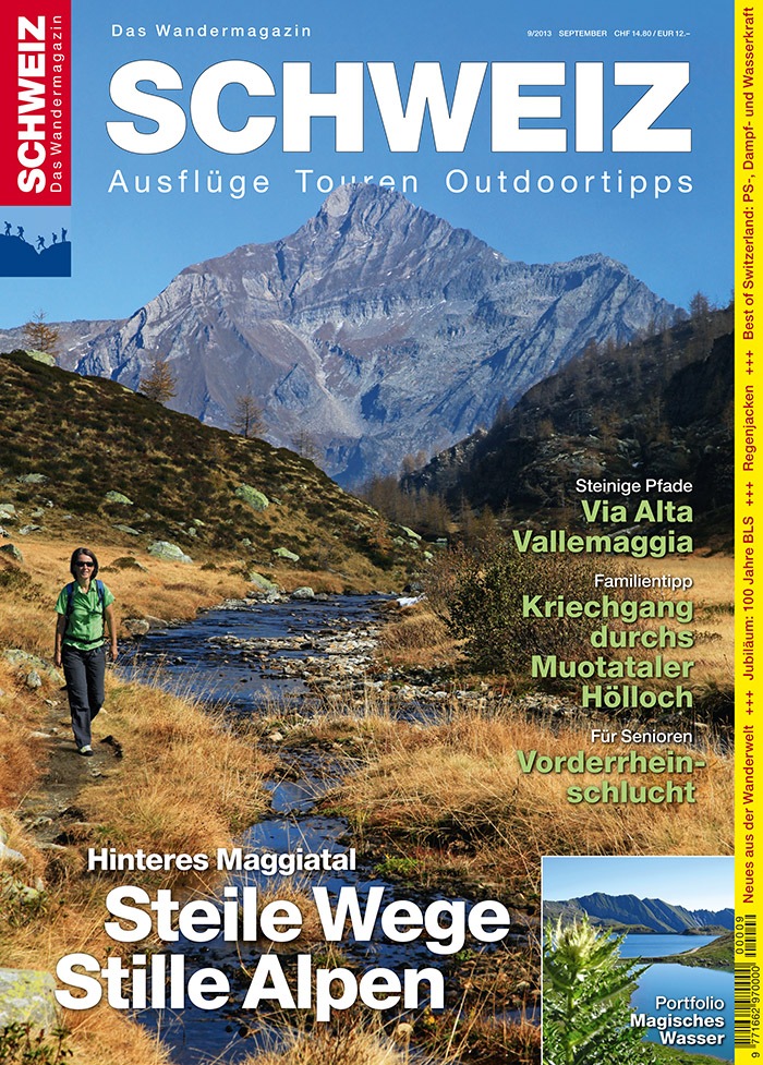 MedienmitteilungSteile Wege - Stille Alpen / Die neue Ausgabe des Wandermagazins SCHWEIZ widmet sich dem Maggiatal (BILD)2013-09-02T10:35:00Solothurn (ots) - Es ist eine steile und steinige Welt, die Täler des «Alta Vallemaggia». Doch wer die erste Steilstufe der Valle Bavona, Antabia, Calnègia, Campo und wie sie alle heissen auf oft spektakulären Treppenwegen hinter sich gebracht hat, findet sich unvermittelt in einer anderen Welt wieder. Hier, wo früher die Talbewohner in ihrem erbarmungslosen Überlebenskampf ihr Vieh in einem jahreszeitlich bedingten Nomadismus gesömmert und Heu für die Wintermonate eingebracht haben, sind es heute Wandertouristen, die auf den lieblichen Alpen Ruhe und Erholung suchen. Die neue Ausgabe des «Wandermagazin SCHWEIZ» stellt die schönsten Wanderziele rund um das hintere Maggiatal vor. Aus dem Inhalt Für Alpinwanderer: In 6 steinigen Tagen über die Via Alta Vallemaggia TI Naturtipp: Wenn Pflanzen reisen Für Senioren: Mit dem WanderFritz durch die Ruinaulta GR Portfolio: Magische Wasserlandschaften im hinteren Maggital Familientipp: Höhlentour durchs schwyzerische Hölloch SZ Best of Switzerland: Mit Ps-, Dampf- und Wasserkraft Produkte: Regenjacken 100 Jahre Lötschbergbahn Die Ausgabe «Hinteres Maggiatal» des Wandermagazins SCHWEIZ ist ab sofort an allen grossen Kiosken oder direkt beim Rothus Verlag erhältlich (Preis CHF 14.80). www.wandermagazin.ch, wandermagazin@rothus.ch, Tel. 032 626 40 29. Download Titelseite und Medienmitteilung des aktuellen «Wandermagazins SCHWEIZ»: www.wandermagazin.ch Kontakt: Rezensionsexemplare gratis erhältlich bei: Permalink: