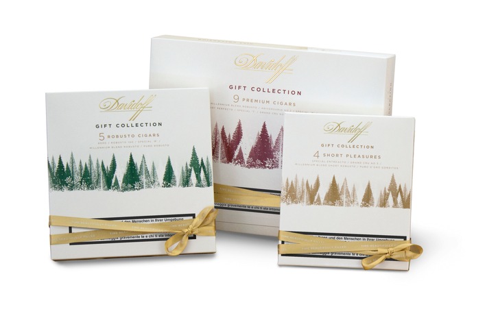 MedienmitteilungDavidoff Cigarren-Geschenkkollektion 2013 - Das perfekte Weihnachtsgeschenk für Cigarrenliebhaber (BILD)2013-11-06T12:21:56Basel (ots) - Für die Festtage 2013 hat Davidoff eine Cigarren-Geschenkkollektion kreiert, die Cigarrenliebhaber in aller Welt mit vielfältigen Geschmackserlebnissen und genussvollen Momenten erfreuen soll. Bei der Kreation dieser erlesenen Davidoff Sortimente standen die Vorzüge der Cigarrenliebhaber in puncto Mischung, Geschmackserlebnis und Format im Vordergrund. Mit diesen perfekten Geschenkideen können Cigarrenliebhaber Davidoffs breite Palette exquisiter Cigarren entdecken und ihre Zeit mit dem Geniessen verbringen - bei Feierlichkeiten an den Festtagen, im Kreise enger Freunde und der Familie oder in persönlichen, besinnlichen Momenten in dieser ganz besonderen Zeit des Jahres. Die dekorative Davidoff Geschenkkollektion 2013 in der eleganten Festtagsverpackung umfasst feine Davidoff Cigarren in Mischungen, die täglichen Genuss für Weihnachten und die Festtage garantieren. Die neue Reihe gibt es in fünf unterschiedlichen Sortimenten. Davidoff Festtagssortiment-Geschenksets Davidoff Sortiment mit 9 Cigarren (CHF 190,00) Davidoff «Robusto» Kollektion mit 5 Cigarren (CHF 111,25) Davidoff «Puro d'Oro» Kollektion mit 4 Cigarren (CHF 72,00) Davidoff «Millennium Blend» Sortiment mit 4 Cigarren (CHF 96,80) Davidoff Tubos Sortiment mit 3 Cigarren (CHF 56,50) Lancierung und Verfügbarkeit Die limitierten Editionen der Davidoff Geschenkkollektionen 2013 sind ab November 2013 bei Davidoff Vertragshändlern und Depositären in den USA und weltweit erhältlich Kontakt: Oettinger Davidoff AG Permalink: