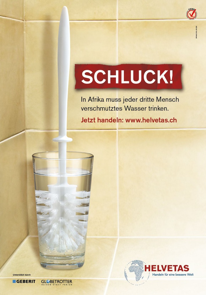 MedienmitteilungHelvetas steckt WC-Bürste in Trinkwasserglas! (BILD)2014-08-19T12:00:00Zürich (ots) - Mit Fäkalien verschmutztes Trinkwasser ist eine der häufigsten Krankheitsursachen. Trotz Fortschritten sterben noch immer täglich 3000 Kinder, weil sie verunreinigtes Wasser getrunken haben. Die soeben lancierte Kampagne von Helvetas ruft die Schweizer Bevölkerung zum Handeln auf. Seit 1990 haben 2,3 Milliarden Menschen ihre Trinkwasserversorgung verbessern können. In Afrika haben heute doppelt so viele Menschen Zugang zu sauberem Wasser wie vor 20 Jahren. Vielen Ländern - vor allem in Asien - ist es gelungen, den Anteil der Bevölkerung ohne Zugang zu sauberem Wasser zu halbieren. Die internationale Entwicklungszusammenarbeit hat entscheidend dazu beigetragen, dieses wichtige Millennium-Entwicklungsziel zu erreichen, Helvetas hat seit der Jahrtausendwende 3,8 Millionen Menschen Zugang zu Trinkwasser verschaffen können. Trotz dieser enormen Fortschritte ist die Verunreinigung von Trinkwasser durch Fäkalien weltweit noch immer die mit Abstand häufigste Ursache für Darmerkrankungen. Während hierzulande eine Durchfallerkrankung nach ein paar Toilettengängen meist ausgestanden ist, sterben in Entwicklungsländern täglich 3000 Kinder und Säuglinge an Darminfektionen, ausgelöst durch verseuchtes Trinkwasser. Kinder unter fünf Jahren sind besonders gefährdet. Ihr Immunsystem ist noch nicht voll ausgebildet und oftmals durch Mangelernährung zusätzlich geschwächt. Fehlt medizinische Versorgung oder ist diese ungenügend, führen selbst an und für sich heilbare Durchfallerkrankungen bei Kleinkindern zum Tod. Mit der soeben lancierten und durch Geberit mitfinanzierten Plakatserie macht Helvetas auf diesen Missstand aufmerksam. Ein Motiv zeigt eine WC-Bürste im Trinkwasserglas. Ein zweites fordert dazu auf, das Toilettenwasser zu trinken. Die Darstellungen mögen provozieren. Die Botschaft ist jedoch einfach. Was in unserer Vorstellung Ekel erregt, ist leider für jeden dritten Menschen in Afrika traurige Realität. Mit den erwähnten Folgen. Das muss nicht sein. Deshalb ruft Helvetas mit der aktuellen Kampagne die Schweizer Bevölkerung dazu auf, zu handeln und den Bau von Trinkwasserbrunnen und sicheren Latrinen zu unterstützen. Helvetas stellt jedoch nicht einfach Brunnen auf die Dorfplätze und überlässt sie dann dem Schicksal. Die Bevölkerung arbeitet aktiv bei der Planung und Umsetzung von Wasserversorgungen mit. Von der Bevölkerung gewählte Wasserkomitees sorgen für den Unterhalt der Anlagen. Von Helvetas ausgebildete lokale Fachleute informieren über die Zusammenhänge zwischen Hygiene und Gesundheit. Danach wird es für viele Haushalte zur Ehrensache, unter Anleitung lokaler Fachleute eine eigene sichere Latrine zu bauen. Vor allem die Frauen schätzen die Tatsache, über eine familieneigene, geschützte Toilette zu verfügen. Sie bietet nicht nur Hygiene und Komfort, sondern schützt auch vor Belästigungen und Übergriffen, wie sie auf Toilettengängen im Busch und weitab des Hauses häufig vorkommen. Wie wichtig diese Toiletten für die Menschen heute sind, zeigt sich zum Beispiel in der Kleinstadt Metoro im Norden von Mosambik. Dort haben viele Familien den Sichtschutz um ihre Toiletten mit kunstvollen Ornamenten versehen. So wie in der Schweiz, wo früher die Türen einfacher Toiletten mit einem eingeschnittenen Herz verziert wurden. Bilder und PDFs der Kampagnensujets in Printqualität finden Sie in dieser Medienmitteilung auf www.helvetas.ch/medien. Spendenkonto PC 80-3130-4 Links www.helvetas.ch/kampagne www.helvetas.ch/wasser Kontakt: Weitere Informationen Permalink: