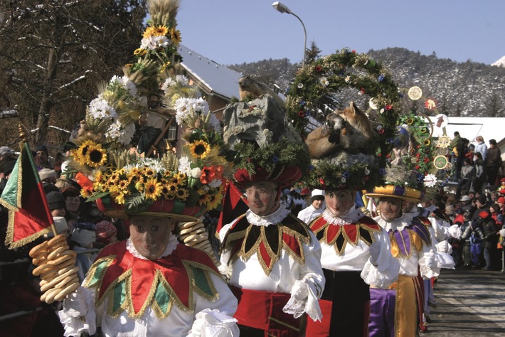 MedienmitteilungTelfer Schleicherlaufen 2015: Auftritt für "Wilde", "Schleicher" und den "Panz'naff" - BILD2015-01-14T10:04:49Am 1. Februar 2015 lädt die Marktgemeinde Telfs zu einer der eindrucksvollsten Fasnachten Tirols Innsbruck (ots) - Alle fünf Jahre findet in Telfs westlich von Innsbruck eine der eindrucksvollsten Fasnachten in ganz Tirol statt, die auch Teil des immateriellen nationalen UNESCO-Kulturerbes ist. Wenn am Sonntag, 1. Februar 2015 wieder bis zu 20.000 Zuschauer entlang der Wegstrecke der Faszination dieses streng choreografierten farbenprächtigen Schauspiels erliegen, dann ist das rund 500 Aktiven zu verdanken, die monatelang die Vorbereitungen des Schleicherlaufens begleiten. Bereits in den Wochen vor dem großen Tag finden laufend Ereignisse im Vorfeld statt - darunter "Nazausgaben", "Eseleinführen" oder "Viechertaf" (Taufe der Tiere). Wenn übrigens von Tieren die Rede ist, dann handelt es sich um verkleidete Männer, die alle, auch die weiblichen, Figuren des Schleicherlaufens darstellen. Vor dem Umzug gibt es am frühen Morgen des 1. Februar eine "Sonnenanbetung", die für gutes Wetter sorgen soll. Nach dem Sammeln der Gruppen, dem Einfangen der Bären und dem Aufmarsch der "Musibanda" markieren Böllerschüsse um 11 Uhr den Beginn der Aufführungen. Zur Schleichergruppe gehören der Goaßer (Geißhirt), Tuxer und Tuxerin oder Kellnerin und Wirt. Die Schleicher selbst schließlich sind ein prachtvoller Anblick mit ihren farbigen Kniebundhosen aus Seide, verziert mit Spitzen, Fransen und Borten. Am bemerkenswertesten sind jedoch die Masken mit jugendlichen Gesichtszügen und die Hüte, bis zu 1,60 Meter hohe Kreationen mit sagenhaft fantasievollen Gebilden. Besonders eindrucksvoll sind die "Wilden" mit ihren furchteinflößenden Masken, gehüllt in ein Kostüm aus Baumbart. Die Wilden führen den "Panz'naff" mit sich, einen als Affe verkleideten Mann. In der Grupppe der "Bären und Exoten" darf ein Affe ebenfalls nicht fehlen, genausowenig wie Riesenelefant, Kamel, Bären sowie die Kröte als altes Fruchtbarkeitssymbol. Der "Naz" schließlich, die Puppe mit den menschlichen Zügen, ist Mittelpunkt der Gruppe der Laninger, Menschen aus dem fahrenden Volk, die sich noch zu Beginn des 20. Jahrhunderts als Gelegenheitsarbeiter verdingten. Das rund dreistündige Spektakel vervollständigen weitere Gruppen mit Fasnachtswägen, die auch das aktuelle dörfliche und regionale Geschehen unter die unterhaltsame, aber gleichzeitig unbarmherzig kritische Lupe nehmen. Ab 14 Uhr trifft man sich dann im Rathaussaal von Telfs, wo die Schleicherhüte aus der Nähe bestaunt werden können und die speziell für diesen Anlass produzierte Fasnachtsmarke zum Verauf aufliegt. Für die Bevölkerung von Telfs ist das Schleicherlaufen 2015 erst vorbei, wenn am 1. Fastensonntag beim Gedenkgottesdienst der im vergangenen Jahr verstorbenen Fasnachtler gedacht wird. Dann heißt es wieder vier Jahre warten, bis am Josefitag 2019 zur nächsten Fasnacht gerufen wird. Bild(er) zu dieser Aussendung finden Sie im AOM / Originalbild-Service sowie im OTS-Bildarchiv unter http://bild.ots.at Rückfragehinweis: Innsbruck Tourismus Tel. +43-512-59850 office@innsbruck.info www.innsbruck.info www.schleicherlaufen.at Digitale Pressemappe: http://www.ots.at/pressemappe/4855/aom *** TP-ORIGINALTEXT PRESSEAUSSENDUNG UNTER AUSSCHLIESSLICHER INHALTLICHER VERANTWORTUNG DES AUSSENDERS - WWW.TOURISMUSPRESSE.AT *** TPT0003 2015-01-14/10:00 Permalink: