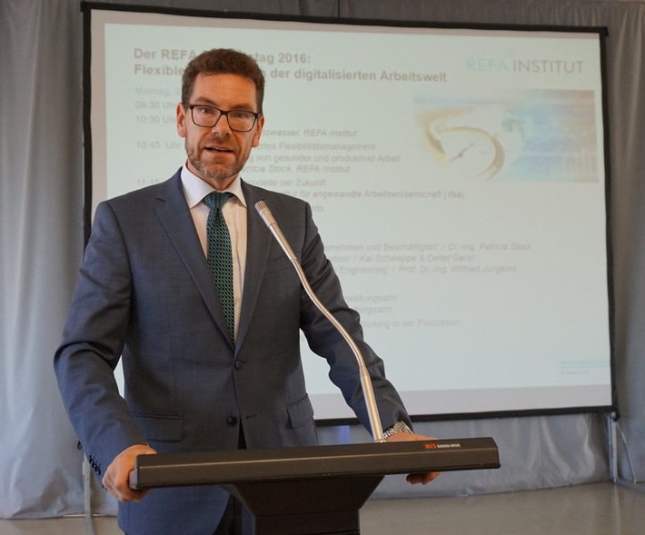 MedienmitteilungREFA-Institut: Flexibilität ist ein entscheidender Erfolgsfaktor in der digitalisierten Arbeitswelt2016-11-30T15:50:57Dortmund (ots) - Die immer fortschrittlicheren Informations- und Kommunikationstechnologien eröffnen für Unternehmen erhebliche Potenziale für eine flexible Gestaltung der betrieblichen Prozesse. Gleichermaßen ergeben sich auch durch die Digitalisierung potenzielle Freiheitsgrade für die Beschäftigten, die zu einer besseren Vereinbarkeit von Arbeit und Privatleben führen können. Vor diesem Hintergrund ist die Flexibilität ein entscheidender Erfolgsfaktor in der digitalisierten Arbeitswelt. Es gibt keine Standardlösung, vielmehr muss jedes Unternehmen im Dialog mit den Beschäftigten eine betriebsspezifische Strategie für das flexible Arbeiten identifizieren. Aktuell erfährt die Arbeitswelt einige gravierende Veränderungen. Ein Trend ist das flexible Arbeiten, bei dem die Arbeit sowohl zeitlich als auch räumlich entkoppelt wird. Gestaltungskonzepte hierfür sind z.B. Vertrauensarbeitszeit, Telearbeit oder auch die Gestaltung der Bürolandschaften. Die erfolgreiche und nachhaltige Umsetzung stellt gleichermaßen neue Anforderungen an die Unternehmen und an die Beschäftigten. Es gibt keine Standardlösung, vielmehr muss jedes Unternehmen im Dialog mit den Beschäftigten eine betriebsspezifische Strategie für das flexible Arbeiten identifizieren. Hierbei müssen auch neue Wege beschritten werden, um sozialpartnerschaftlich zu einer gemeinsamen Lösung zu finden. Insbesondere gibt es noch viele arbeitspolitische Fragen zu lösen. Das am 29.11.2016 erschienene Weißbuch "Arbeiten 4.0" des Bundesministeriums für Arbeit und Soziales (BMAS) zeigt die auftretenden Spannungsfelder der Arbeitswelt 4.0 und die daraus resultierenden Gestaltungsaufgaben auf. Der REFA-Institutstag 2016, der am 28. November 2016 in Dortmund stattfand, widmete sich dem Thema "Flexibles Arbeiten in der digitalisierten Arbeitswelt". Mit über 150 Teilnehmern war die Resonanz überaus groß, was die aktuelle Relevanz und Bedeutung des Themas verdeutlicht. Es fand ein reger Wissens- und Erfahrungsaustausch zwischen Vertretern aus Wirtschaft, Wissenschaft und Verbänden statt, bei dem die Anforderungen und Herausforderungen für das flexible Arbeiten vorgestellt und Lösungsansätze hierfür diskutiert wurden. "Flexibilität wird heute sowohl von Unternehmen als auch Beschäftigten gewünscht. Allerdings stellen beide Seiten unterschiedliche Anforderungen hieran. Vor diesem Hintergrund bedarf es eines humanorientierten Flexibilitätsmanagements, das neben der betrieblichen Kapazitätsabstimmung auch eine zum Unternehmen passende Unternehmens-, Vertrauens- und Führungskultur, Maßnahmen zur Kompetenzentwicklung und eine Belastungsanalyse beinhaltet. Flexibilitätsmanagement muss immer zu einer Win-Win-Situation zwischen Unternehmen und Beschäftigten führen, um langfristig den Unternehmenserfolg zu sichern.", so Frau Dr.-Ing. Patricia Stock, die Leiterin des REFA-Instituts, in ihrem Eröffnungsvortrag. In einem flankierenden Workshop wurden die aktuellen Flexibilitätsbedarfe von Unternehmen und Beschäftigten in Produktion und Verwaltung sowie Lösungen zur Kapazitätsabstimmung diskutiert. Im Anschluss gab Frau Dipl.-Psych. Corinna Jager vom Institut für angewandte Arbeitswissenschaft (ifaa) in ihrem Vortrag einen Ausblick auf die Arbeitszeitmodelle der Zukunft. "Arbeitszeitmodelle der Zukunft kombinieren Bewährtes, Innovationen sowie unterstützende Instrumente und Arbeitsformen. Die Synergieeffekte erweitern den zeitlichen und örtlichen Flexibilitätsspielraum für Unternehmen und Beschäftigte enorm. Dabei sind bestehende gesetzliche und tarifliche Regelungen auf Angemessenheit zu überprüfen und ggfs. an die neuen Anforderungen anzupassen.", so Frau Jaeger. Der Workshop "Gestaltung flexibler Arbeitswelten", der von Herrn Dr. Detlef Gerst, IG Metall Vorstand, und Herrn Dipl.-Ing. Kai Schweppe, Geschäftsführer Arbeitspolitik bei Südwestmetall, durchgeführt wurde, vertiefte dann die aktuell diskutierten arbeitspolitischen Fragestellungen. Regelungsbedarfe lassen sich z.B. bei der Gestaltung von Arbeitszeit und Arbeitsorganisation, Gesundheitsschutz oder Datenschutz finden. Darüber hinaus muss sich allerdings auch die Führung verändern, um ein flexibles Arbeiten zu ermöglichen. Im Workshop "Der REFA-Techniker Industrial Engineering" zeigten Prof. Dr.-Ing. Wilfried Jungkind, Hochschule Ostwestfalen-Lippe, und Dipl.-Ing. (FH) Ingo Pläster, Institut für wirtschaftliche und technologische Unternehmensführung (IWT) an der Hochschule Ostwestfalen-Lippe e.V., die Aufgaben und Anforderungen an das Industrial Engineering auf. Gefragt sind zukünftig Fach- und Führungskräfte, die gelernt haben, sich bei Bedarf stets neu zu spezialisieren und flexibel auf die aktuellen Anforderungen des Betriebs zu reagieren. Die REFA-Ausbildung zum REFA-Techniker für Industrial Engineering befähigt hierzu, indem sie das Knowhow zur operativen Prozessgestaltung vermittelt. Zum Abschluss wurde die praktische Relevanz des flexiblen Arbeitens in zwei Vorträgen aus betrieblicher Sicht dargestellt: Herr Christoph Hagemann vom Bundesverwaltungsamt zeigte, wie Arbeitszeitflexibilität beim Bundesverwaltungsamt realisiert wurde, um bei gleichbleibend hoher Kundenorientierung den Mitarbeitern eine höhere Flexibilität und daraus resultierend eine bessere Vereinbarkeit von Beruf und Familie zu geben. Das vorgestellte Modell hat sich bereits langjährig bewährt. Herr Jan Westerbarkey, Geschäftsführer der Westaflex GmbH, berichtete abschließend zum Co-Working in der Produktion bei Westaflex. Sein Fazit: "Maschinen und Verfahren sind austauschbar, Unternehmenskultur ist es nicht". Prof. Dr.-Ing. Sascha Stowasser, Vorstand des REFA-Instituts, betonte noch einmal am Ende: "Für die Umsetzung von flexibler Arbeit sind neue Methoden und Werkzeuge erforderlich, welche die Situation der Unternehm