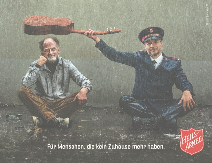 Wenn an Weihnachten viele Menschen zurück in ihre Heimat kommen, dann ist die Heilsarmee bei den Menschen, die kein Zuhause mehr haben. Das zeigt ihr neues Plakatsujet.