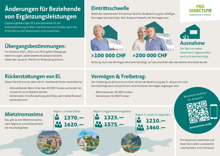 Medienmitteilung2021 können bei der Bekämpfung von Altersarmut wichtige Weichen gestellt werden2020-12-29T09:00:00Zürich (ots) - Die Reform der Ergänzungsleistungen (EL) tritt am 1. Januar 2021 in Kraft. Während sie in einigen Punkten eine Verbesserung für ältere Menschen herbeiführt, bleiben strukturelle Fragen ungelöst. Wird 2021 an den richtigen Stellschrauben gedreht, werden nicht nur die EL substanziell entlastet, sondern es wird auch die Situation von betreuungsbedürftigen älteren Menschen verbessert. Armut im Alter ist noch immer weit verbreitet - sie ist aber keine Schande. Denn in keiner Altersgruppe sind die Vermögen und Einkommen so ungleich verteilt, wie bei den über 60-Jährigen. Noch immer ist jede achte Person im Pensionsalter auf Ergänzungsleistungen (EL) angewiesen, um die minimalen Lebenskosten zu decken. "Das zeigt nicht nur, wie wichtig die EL sind, sondern auch, dass sie nur die Lücke schliessen, die dadurch entsteht, dass die AHV ihren verfassungsmässigen Auftrag der Existenzsicherung im Alter nicht erfüllt", betont Alain Huber, Direktor von Pro Senectute Schweiz. Die grösste Fach- und Dienstleistungsorganisation für Menschen im Pensionsalter setzt sich seit über 100 Jahren für die Bekämpfung von Altersarmut ein. So auch bei der jüngsten Reform des Bundesgesetzes über die Ergänzungsleistungen, die am 1. Januar 2021 in Kraft treten wird. "Die Reform kommt den Seniorinnen und Senioren in einigen wichtigen Punkten wie der Anpassung der anrechenbaren Mietkosten entgegen. Dafür haben wir uns als grösste Altersfachorganisation starkgemacht", sagt Huber, räumt aber ein: "Es gilt jedoch, dranzubleiben, und 2021 wichtige Weichen zu stellen, um Altersarmut grundsätzlich zu bekämpfen." "Es braucht einen weiteren Schritt" Bei der Anpassung der anrechenbaren Mietkosten geht die Reform in die richtige Richtung, wird aber den dynamischen Mieten nicht gerecht. An einem zentralen Punkt könnten die EL allerdings langfristig finanziell gestärkt werden, ohne die Menschen im Alter zu bestrafen: mit einer Entlastung bei den Heimkosten und einer Verlagerung hin zu einer besseren Unterstützung bei der Betreuung zu Hause. "Denn 60 Prozent der EL zur AHV flossen 2019 an Menschen im Heim. Dies überrascht angesichts der durchschnittlichen Heimkosten von jährlich 72'000 Franken wenig, zeigt aber, wie wichtig es ist, die EL genau an diesem Punkt durch die gezielte finanzielle Unterstützung von Betreuungsleistungen zu Hause zu entlasten", ergänzt Huber. Eine Studie von Pro Senectute zeigt, dass 660'000 Menschen im Alter über 63 Jahren mit nur einer Betreuungsleistung autonom zu Hause altern könnten und sich ein Alters- und Pflegeheim-Eintritt hinauszögern liesse. Die Arbeiten an der Motion 18.3716 zur Finanzierung von betreutem Wohnen der nationalrätlichen Kommission für soziale Sicherheit und Gesundheit können 2021 die Weichen in die richtige Richtung stellen. Aber auch die anstehenden Reformen der AHV und der zweiten Säule sind entscheidend, um die strukturellen Fragen der Altersarmut anzugehen. Hier ist im kommenden Jahr das Parlament gefordert. "Wir werden zum Wohl der älteren Bevölkerung an diesen zentralen Themen dranbleiben, um Altersarmut weiter zu bekämpfen", verspricht Alain Huber. Beratung und EL-Rechner als Unterstützung Gut jede dritte Sozialberatung bei Pro Senectute dreht sich um die Finanzen. "Häufig kommen Seniorinnen und Senioren wegen Finanzproblemen zu uns, die nicht wissen, dass sie Anspruch auf EL haben, wenn die Rente nicht genügt", so Huber. Die Mitarbeitenden der Pro Senectute Organisationen in allen Landesteilen helfen, Ansprüche an die Sozialversicherungen geltend zu machen. Auch der neu konzipierte EL-Rechner von Pro Senectute unterstützt dabei, einen EL-Anspruch abzuschätzen: www.prosenectute.ch/EL-rechner. Pressekontakt: