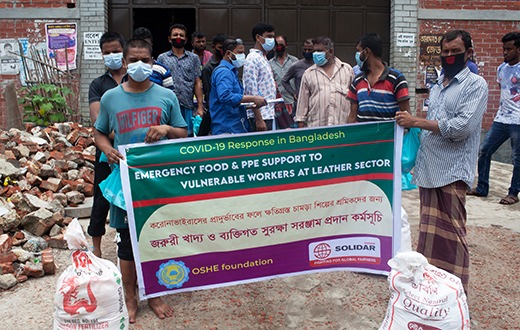 MedienmitteilungCoronajahr 2020: Solidarität mit Arbeiter*innen weltweit2021-05-26T10:31:36Coronajahr 2020: Solidarität mit Arbeiter*innen weltweit Solidar Suisse blickt auf ein erfolgreiches Vereinsjahr 2020 zurück. Trotz den Unsicherheiten durch die Corona-Pandemie zeigten sich die privaten Spender*innen sehr solidarisch. So konnte Solidar Suisse die Hilfe für notleidende Arbeiter*innen im globalen Süden ausweiten und den Jahresumsatz um 4 Prozent erhöhen. Solidar Suisse wird im Rahmen einer strategischen Allianz mit « Brücke · Le pont » einen noch stärkeren Fokus auf Projekte zur Förderung von fairen Arbeitsbedingungen in den Projektländern setzen können. Durch die Corona-Pandemie war der Hilfsbedarf im Jahr 2020 weltweit aussergewöhnlich hoch. In den ersten Monaten der Pandemie konnte Solidar Suisse ausgebeutete und verarmte Arbeiter*innen in Lederfabriken in Bangladesch oder auf Palmölplantagen in Malaysia mit Nothilfe versorgen. Mit Entwicklungszusammenarbeit gegen häusliche Gewalt Die längerfristige Entwicklungszusammenarbeit wurde im Jahr 2020 stärker auf Corona-Präventionsmassnahmen und die Vorbeugung von häuslicher Gewalt ausgerichtet. In Bolivien, wo es mehrmonatige Lockdowns gab, war das Angebot mit einer Hotline für Gewaltbetroffene und Rechtsberatungen für Frauen im letzten Jahr besonders gefragt. Allianz für faire Arbeit Im Rahmen einer Allianz mit der schweizerischen NGO «Brücke · Le pont» wird Solidar Suisse seine Expertise zur Förderung von fairen Arbeitsbedingungen weiter ausbauen. Faire Arbeitsbedingungen und eine funktionierender Service Public sind Grundvoraussetzungen zur Reduktion der weltweit extremen Ungleichheit. Geschäftszahlen für das Jahr 2020 Solidar Suisse verzeichnete 2020 eine Zunahme des Umsatzes von 4 Prozent gegenüber dem Vorjahr. Der Betriebsertrag von 17,43 Mio. Franken lag leicht unter den betrieblichen Ausgaben von 17,64 Millionen Franken. Davon wurden knapp 13 Millionen Franken in den Programmen der internationalen Zusammenarbeit umgesetzt, ein Plus von 7 Prozent gegenüber dem Vorjahr. Insgesamt flossen 71 Prozent der Mittel in die langfristige Entwicklungszusammenarbeit und 29 Prozent in die humanitäre Hilfe. Weitere Informationen: Felix Gnehm, Geschäftsleiter Solidar Suisse: 079 197 95 63 Solidar Suisse, Quellenstr.31, 8005 Zürich Permalink: