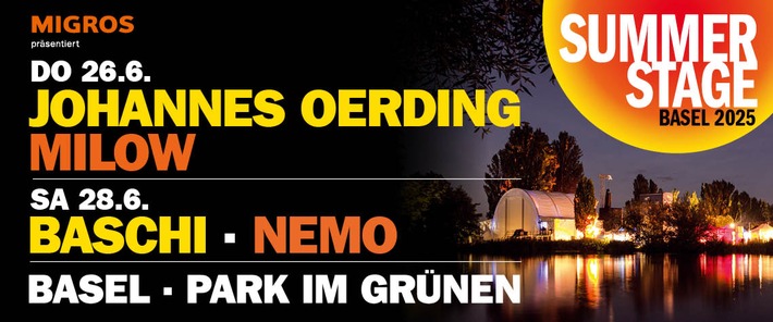 MedienmitteilungNEMO kommt nach Basel an die Summerstage 2025!2024-10-31T11:00:23Donnerstag, 26.06.2025 bis Samstag, 28. Juni 2025 Starzone Presale: Freitag, 01.11.2024, 11.00 Uhr bis Samstag, 02.11.2024, 10.59 Uhr Allgemeiner Vorverkaufsstart: Samstag, 02.11.2024, 11.00 Uhr Wir freuen uns weitere Acts für die Summerstage 2025 in Basel ankündigen zu dürfen: Neben dem bereits angekündigtem Johannes Oerding am Donnerstag 26.06.2025 spielt MILOW Der Belgische Singer-Songwriter bringt sein aktuelles Album ›Nice To Meet You‹ (2022) auf die Bühne! Was 2007 mit Welthits wie „You Don't Know“ oder seiner Akustik-Coverversion von 50 Cents „Ayo Technology“ begann, ist längst zur internationalen Erfolgsgeschichte geworden! Kaum jemand schafft es derart gekonnt, hochpersönliche Themen in universelle Hymnen zu verwandeln wie der belgische Singer-Songwriter Milow. Am Samstag, 28.06.2025 geben wir zwei hochkarätige Headliner bekannt BASCHI Seid dabei, wenn Baschi, der Superstar der Schweizer Musikszene, die Bühne erobert! Nach seinem letzten Album, das durch bedeutende Lebensereignisse wie eine rauschende Hochzeit und die Herausforderungen der Pandemie geprägt ist, bringt er frische Energie und unverwechselbare Sounds mit. Mit seinem neuen Album «Wenn s Läbe drzwüsche chunt» nimmt er euch mit auf eine musikalische Reise durch die Höhepunkte und kleinen Momente des Lebens. Freut euch auf eine explosive Mischung aus Classic Rock, warmen Americana-Klängen und groovigen Beats – alles gepaart mit Baschis einzigartiger Authentizität und Selbstironie. und NEMO Mit nur 18 Jahren gewann NEMO im Jahr 2019 vier Swiss Music Awards - und das in nur einer Nacht. Seit 2020 geht NEMO neue Wege, schreibt für andere KünstlerInnen und veröffentlicht englischsprachige Songs, die sich mit Themen wie Geschlechtsidentität und psychischer Gesundheit auseinandersetzen. 2024 erreichte NEMO mit dem Song The Code nicht nur den Sieg des Eurovision Song Contests, sondern auch Herzen von Millionen Fans weltweit. Bist Du Bereit für ein unvergessliches Erlebnis? Dann lass Dich von NEMO's fesselnder Show auf der Summerstage Basel begeistern und tauche ein in die magische Atmosphäre dieses aussergewöhnlichen Menschen. Weitere Acts folgen. Lorena Melle act entertainment ag Postfach 4002 Basel Permalink: