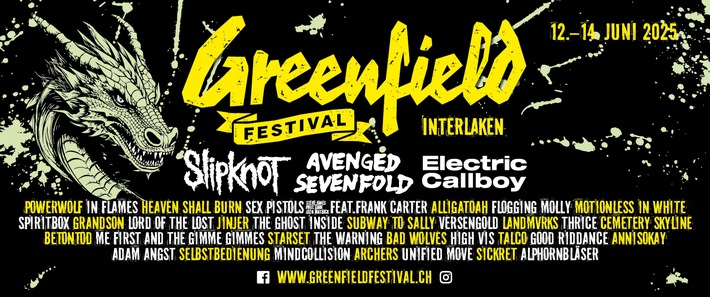 Zürich, 30.01.2025 – Das Greenfield Festival freut sich, das vollständige Line-Up für die diesjährige Veranstaltung bekannt zu geben. Vom 12. bis 14. Juni 2025 werden auf dem Flugplatz Interlaken 36 internationale und nationale Bands auftreten und für feurige Stimmung sorgen.