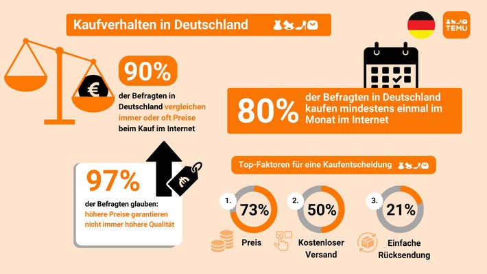 "Die deutschen Käufer sagen, dass ihnen der Preis sehr wichtig ist, sie aber keine Einbußen bei der Qualität hinzunehmen bereit sind", sagt ein Temu-Sprecher. "Wir freuen uns, dass so viele Kundinnen und Kunden angeben, mit Temu Geld zu sparen, und erkennen, welchen Mehrwert wir bieten möchten. Wir sehen es als unsere Aufgabe, smartes Einkaufen für alle einfacher zu machen."
