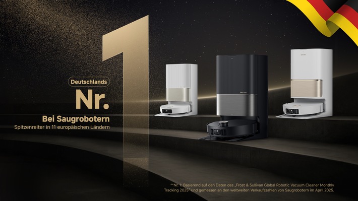 MedienmitteilungDreame saugt sich an die Spitze: Nr. 1 in Deutschland und Europaweit führend / Mehr als ein Trend - Dreame setzt sichals Marktführer durch!2025-07-23T09:30:15Berlin (ots) - Das globale Beratungsunternehmen Frost & Sullivan veröffentlichte heute seinen Marktbericht für Saugroboter vom April 2025. Daraus geht hervor, dass Dreame Technology gemessen am Umsatz den ersten Platz im Markt für Saugroboter in Deutschland belegt. Der Bericht bestätigt außerdem die weltweite Führungsposition von Dreame: In 18 Ländern - darunter 11 in Europa, wie Deutschland, Frankreich, die Schweiz, Belgien und Italien - erreichte die Marke Platz 1. Dies unterstreicht den rasant wachsenden Einfluss von Dreame in der Region. *Frost & Sullivan - 2025 Global Robot Vacuum Market Monthly Tracking (Link) Marktführerschaft durch bahnbrechende Produkte Das starke Wachstum im ersten Quartal ist vor allem auf innovative Produkte zurückzuführen, die intelligente Technik mit praktischem Nutzen im Alltag verbinden. An der Spitze steht der X50 Ultra Complete, ausgestattet mit ProLeap(TM), das das Überwinden von 6 cm hohen Türschwellen ermöglicht, sowie VersaLift(TM), mit dem das Gerät auf eine Höhe von nur 8,9 cm abgesenkt werden kann, um auch unter niedrige Möbel zu gelangen. Er erreicht Ecken, die viele andere Roboter aussparen, während HyperDetangling(TM) ein Verheddern von Haaren verhindert. Die All-in-One PowerDock(TM) automatisiert Staubentsorgung, Heißwasser-Wischreinigung, Wasserauffüllung und Trocknung - für eine echte Rundum-Reinigung ohne manuellen Aufwand. Neben dem Spitzenmodell bringt der L50 Pro Ultra leistungsstarke Technologie einem breiteren Publikum näher. Mit 19.500 Pa Saugkraft, Dual Flex Arm-Randreinigung, EasyLeap(TM)-Hindernisüberwindung und einer verbesserten PowerDock bietet er starke Leistung und smarte Reinigung zu einem attraktiven Preis. Diese beiden Modelle sind zentrale Treiber für den kometenhaften Aufstieg von Dreame in den europäischen Märkten. IFA 2025: Dreame startet in eine neue Ära globaler Marktführerschaft Im September wird Dreame auf der IFA seinen bisher größten Auftritt hinlegen: Erstmals übernimmt die Marke eine komplette Halle - Halle 7.1A mit einer Fläche von 1.218 Quadratmetern. Noch vor drei Jahren war Dreame ohne eigenen Stand auf der IFA vertreten. Heute - mit Spitzentechnologie, einem starken Vertriebs- und Servicenetz sowie einem klaren Fokus auf benutzerorientiertes Design - hat sich Dreame zur führenden Marke für Saugroboter in Europa entwickelt. Die Präsentation auf der IFA 2025 wird nicht nur eine Feier des bisher Erreichten, sondern auch ein Ausblick auf die nächsten Meilensteine. Besuchen Sie Dreame in Berlin und erleben Sie die Zukunft der Hausreinigung - leise, intelligent und für den Alltag gemacht. Sean Chen, Managing Director Western Europe bei Dreame, sagt dazu: "Die Spitzenposition im deutschen Markt ist für Dreame ein bedeutender Meilenstein - und weit mehr als nur eine Platzierung. Sie steht für eine Vision, die auf Innovation basiert, für unser konsequentes Qualitätsversprechen und für das ständige Bestreben, die Bedürfnisse deutscher Haushalte wirklich zu verstehen. Dieser Erfolg zeigt die Stärke unseres lokalen Ökosystems und das wachsende Vertrauen der Verbraucher, die Dreame zu einem festen Bestandteil ihres smarten Alltags gemacht haben. Für uns ist das eine große Ehre - und zugleich erst der Anfang unserer Reise in Deutschland." Einblicke aus dem aktuellen Marktbericht: Saugroboter sind keine Werkzeuge mehr - sondern stille, intelligente Begleiter Der aktuelle Bericht von Frost & Sullivan zeigt einen grundlegenden Wandel: Die nächste Generation von Saugrobotern zeichnet sich nicht durch noch mehr Funktionen aus, sondern durch intelligente Integration in den Alltag. Moderne Modelle reinigen nicht nur - sie passen sich an, denken mit und fügen sich unauffällig in den Rhythmus des Zuhauses ein. Vier zentrale Trends prägen diese Entwicklung: