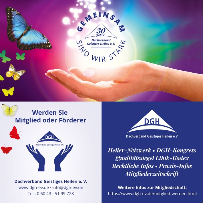 MedienmitteilungGeistiges Heilen: ein weltweit erprobter Weg zur Förderung der ganzheitlichen Gesundheit2025-07-29T12:28:27Nidda (ots) - Geistiges Heilen ist ein Angebot an Hilfesuchende, die Selbstheilungskräfte zu stärken, das neben Schulmedizin, Naturheilkunde und anderen therapeutischen Methoden hilfreich sein kann. Heilerinnen und Heiler gibt es seit Urzeiten in allen Kulturen: Schamanen verbinden sich mit Krafttieren, Christen mit Jesus, Heiler*innen vieler Glaubensrichtungen mit Engeln. Geistiges Heilen basiert auf einem ganzheitlichen Welt- und Menschenbild: Alle Lebewesen werden von einer universellen Lebensenergie durchströmt - je nach Kulturkreis z. B. "Prana" oder "Qi" genannt. Erkrankungen können sich auf der physischen, emotionalen, mentalen oder spirituellen Ebene ausdrücken. Durch eine Heilbehandlung unterstützen Heiler*innen die Harmonisierung des Energieflusses ihrer Klient*innen und so die Aktivierung ihrer Selbstheilungskräfte. Über den Dachverband Geistiges Heilen (DGH) e. V. Der Dachverband Geistiges Heilen e. V. klärt über Möglichkeiten und Grenzen geistiger Heilweisen auf. Mit dem verbindlichen Verhaltens- und Ethikkodex für Mitglieder hat er Maßstäbe für die Arbeit von Heilern gesetzt. Wesentlich ist z. B., dass sie auf spiritueller bzw. energetischer Ebene arbeiten, also keine Diagnosen stellen oder den Anschein erwecken, Heilkunde auszuüben. Am 18. Februar 2025 feierte der DGH e. V. sein 30-jähriges Bestehen. Mitglieder erhalten die Zeitschrift "Heiler-Info" und professionelle rechtliche Informationen für den Geschäftsaufbau. DGH-Regional-Treffen, zu denen auch Nicht-Mitglieder eingeladen sind, bieten Impulse für die Heiler-Praxis. Seit über 20 Jahren veranstaltet der DGH e . V. den "Kongress Geistiges Heilen" in Rotenburg a. d. Fulda, um geistige Heilweisen zu erleben, kennenzulernen und zu verstehen, mit der Möglichkeit, eine Heilbehandlung zu erhalten. Der nächste DGH-Kongress findet vom 9.-11. Oktober 2026 statt. Weitere Informationen über den DGH e. V.: Dachverband Geistiges Heilen e. V. (DGH), Geschäftsstelle: Malte Pätzold-Jakob, Tel.: +49 (0)6043 - 51 99 728, E-Mail: info@dgh-ev.de, Sprechzeiten: Montag - Donnerstag 09:00-12:00 Uhr, www.dgh-ev.de Pressekontakt: Irisa Abouzari, Tel.: 0 60 43 - 51 99 291, E-Mail: presse@dgh-ev.de Permalink: