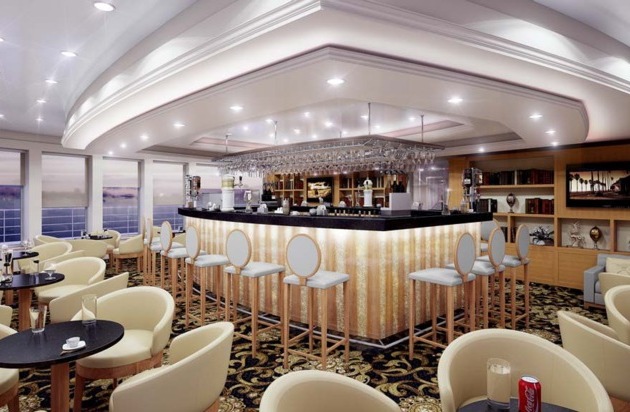 Elegante Panoramabar der Excellence Katharina. Weiterer Text über ots und www.presseportal.ch/pm/100018141 / Die Verwendung dieses Bildes ist für redaktionelle Zwecke honorarfrei. Veröffentlichung bitte unter Quellenangabe: "obs/Reisebüro Mittelthurgau Fluss- und Kreuzfahrten"
