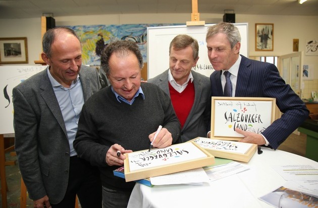Der international tätige Künstler freut sich über die Beauftragung: "Für mich steht das SalzburgerLand als Füllhorn voller wunderschöner Einmaligkeiten: Natur, Sport, Musik und natürlich bildende Kunst - das alles findet sich hier bei uns im Überfluss. Das Land ist virtuos!" Durch sein globales ?uvre in allen Disziplinen der bildenden Kunst und seiner einmaligen Kombination aus handwerklicher Praxis, architektonischem Wissen und malerisch-zeichnerischem Können wusste Johann Weyringer bereits vor der Entwicklung, welche Erfordernisse es zu berücksichtigen gab. Eine Wort-Bild-Marke muss trotz künstlerischem Ansatz im besten Sinne des Wortes "Gebrauchsgegenstand" und breit einsetzbar sein.