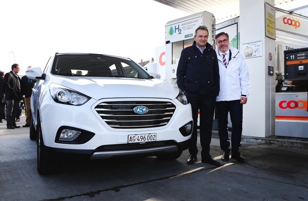 Diego Battiston, Managing Director von Hyundai Suisse, begrüsst den Aufbau des Tankstellennetzes: «Seit der Einführung des ersten Hyundai ix35 Fuel Cell vor rund einem Jahr hat sich in der Schweiz bereits viel bewegt. Bei der EMPA in Dübendorf steht bereits eine 700-bar-Tankstelle für Forschungszwecke im Einsatz, die ersten zehn von uns importierten Brennstoffzellenfahrzeuge sind seit Monaten in der Schweiz unterwegs und - das Beste - wir erhalten nur positive Rückmeldungen. Die Kunden schätzen die Annehmlichkeiten des Elektroantriebs genauso wie die hohe Reichweite und die Alltagstauglichkeit des Fahrzeugs. Diese neue Mobilität aber ist für unsere Kunden nur zugänglich, wenn auch die Versorgung mit Wasserstoff gewährleistet ist. Mit der Eröffnung der ersten öffentlichen Tankstelle setzt Coop ein wichtiges Zeichen in diese Richtung und leistet einen grossen Beitrag zur umweltfreundlichen und nachhaltigen Mobilität.»