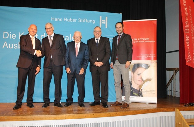 Der Nationale Bildungspreis wurde erstmals gemeinsam von der Hans Huber Stiftung (HHS) und der Stiftung FH SCHWEIZ verliehen. Beide Institutionen haben sich der Förderung des dualen Bildungswegs verschrieben. HHS-Präsident Christian Fiechter hob die Berufsbildung als Stütze der Schweizer Wirtschaft hervor. Es gebe Handlungsbedarf, zumal jährlich immer wieder tausende von Lehrstellen nicht besetzt werden und tausende von Jugendlichen keine Lehre fänden. Herbert Binggeli, Rektor der Berner Fachhochschule, betonte, dass die Fachhochschulausbildungen die Berufsbildung stärke, weil sie praxisorientiert sei.