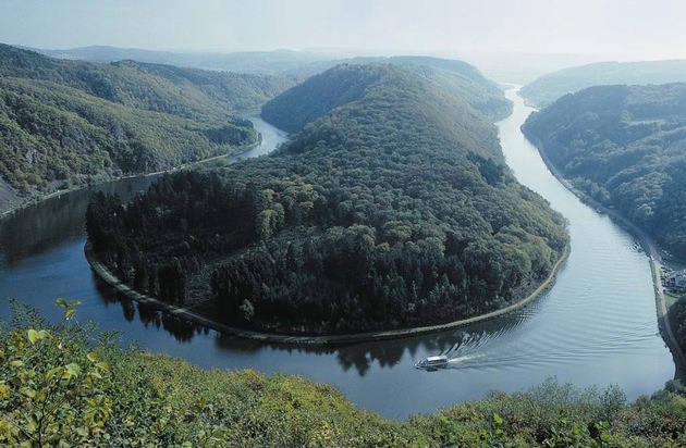 Saarschleife - neues Fahrtgebiet der Excellence Pearl ab 2017. Weiterer Text über ots und www.presseportal.ch/de/nr/100018141 / Die Verwendung dieses Bildes ist für redaktionelle Zwecke honorarfrei. Veröffentlichung bitte unter Quellenangabe: "obs/Reisebüro Mittelthurgau Fluss- und Kreuzfahrten"