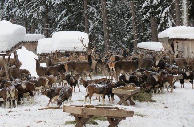 Wien (ots) - Bis zu 150 Wildtiere und der Urlauber ist hautnah dabei: Die Schaufütterung im Thumersbacher Winterwald in Zell am See-Kaprun ist ein beeindruckendes Naturschauspiel. Der Organisator der Tour, Gerhard Schaffer, ist Berufsjäger und für die Bewirtschaftung des Thumersbacher Reviers verantwortlich. Er begleitet die maximal zehnköpfige Besuchergruppe auf ihrer Entdeckungsreise durch die Wälder auf der Ostseite des Zeller Sees. Romantisches Abenteuer und Aufklärung gehen bei Schaffers Touren Hand in Hand: Es ist sein Ziel, die Besucher über das richtige Verhalten im alpinen Gelände zu unterrichten und über die Bedeutung der Tiere für die Erhaltung der Wälder in der Region aufzuklären. Die Schaufütterung erleben die Urlauber von einer speziellen Beobachtungshütte aus. Angelockt durch Rufe des Fachmanns, kommen bis zu 150 Tiere aus dem Dickicht des Waldes herbeigelaufen. Währenddessen verteilt Gerhard Schaffer die Nahrung, eine Mischung aus Heu, Kraftfutter und Obst, in die Tröge. Das Erlebnis bietet eine einmalige Gelegenheit, Wildtiere zu beobachten, die sich dem Menschen sonst nur selten zeigen: Neben dem auch "König der Wälder" genannten Rothirsch mit seinem gewaltigen Geweih sind junge Kälber, erfahrene Alttiere oder die als "Spießer" bezeichneten, männlichen Jungtiere zu sehen. Die Tour, die inklusive Transport zum Fütterungsbereich rund drei Stunden dauert, startet am 21. Dezember 2016 und findet dann jeden Montag, Mittwoch und Freitag um 12.30 Uhr statt. Treffpunkt für alle Teilnehmer ist an der Schranke kurz nach dem Waldheimhof in der Talstraße 177 in 5700 Zell am See. Um vorherige Anmeldung per Email wird gebeten: schaufuetterung@gmx.at.