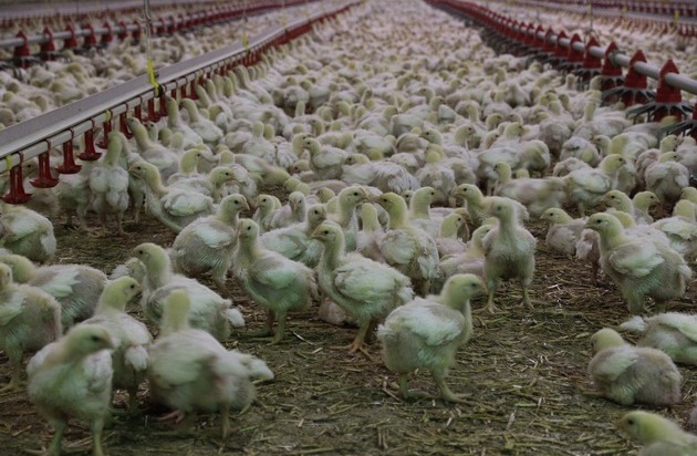 Tausende Masthühner in riesigen Hallen. Weiterer Text über ots und www.presseportal.ch/de/nr/100057078 / Die Verwendung dieses Bildes ist für redaktionelle Zwecke honorarfrei. Veröffentlichung bitte unter Quellenangabe: "obs/Zürcher Tierschutz/© StefanBroeckling - flickr.com"