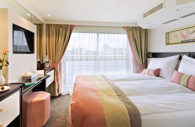 Excellence Pearl Kabine Oberdeck. Weiterer Text über ots und www.presseportal.ch/de/nr/100018141 / Die Verwendung dieses Bildes ist für redaktionelle Zwecke honorarfrei. Veröffentlichung bitte unter Quellenangabe: "obs/Reisebüro Mittelthurgau Fluss- und Kreuzfahrten"