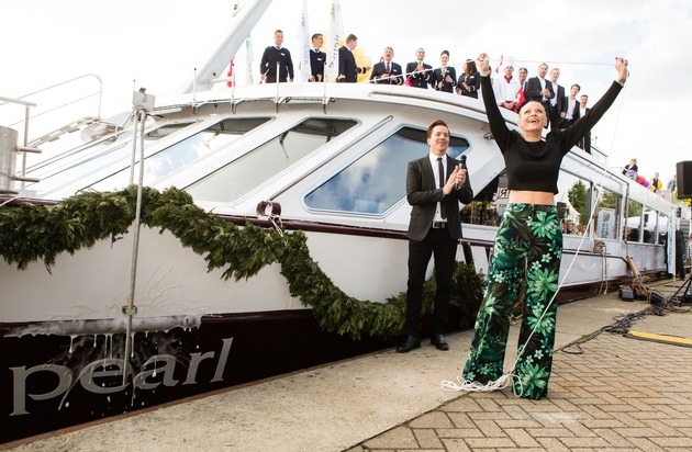 Über 500 Gäste fanden sich am Basler Schiffsanleger Klybeck ein und warteten gespannt auf die Ankunft des kleinen «Schweizer Grandhotels». Dann traf die «Perle» ein. Viele Gäste nutzen die Gelegenheit, das neue Schiff in Augenschein zu nehmen. Taufpatin war erneut die Excellence-Botschafterin Christa Rigozzi. Sie wünschte der Excellence Pearl die traditionelle Handbreit Wasser unter dem Kiel. Pfarrer Felix Christ gab dem Schiff und seiner Besatzung Glück und Segen auf den Weg. Sven Epiney führte durch die feierliche Zeremonie und das Unterhaltungsprogramm, unter anderem mit dem Berner Pop-Klassik-Quartett Phenomen.