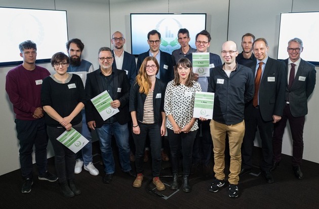 Die Preisträger des dpa-infografik awards 2017. Ausgezeichnet wurden das Magazin Capital und die Süddeutsche Zeitung. Die Veranstaltung fand im Berliner Newsroom der Deutschen Presse-Agentur im Beisein von Infografikern, Designern und Redakteuren statt. (Foto: Silas Stein, dpa) / Weiterer Text über ots und www.presseportal.de/nr/8218 / Die Verwendung dieses Bildes ist für redaktionelle Zwecke honorarfrei. Veröffentlichung bitte unter Quellenangabe: "obs/Silas Stein/dpa"