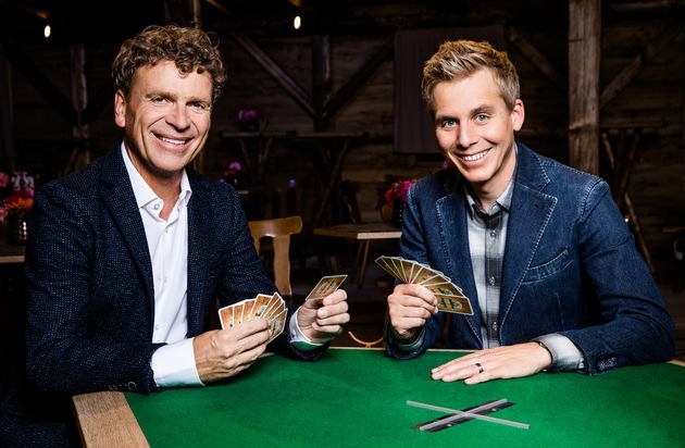 Samschtig-Jass / Jass-Schiedsrichter Dani Müller und Moderator Reto Scherrer / 2017 / Copyright: SRF/Mirco Rederlechner / NO SALES / NO ARCHIVES / Die Veröffentlichung im Zusammenhang mit Hinweisen auf die Programme von Schweizer Radio und Fernsehen ist honorarfrei und muss mit dem Quellenhinweis erfolgen. Jede weitere Verwendung ist honorarpflichtig, insbesondere auch der Wiederverkauf. Das Copyright bleibt bei Media Relations SRF. Wir bitten um Belegexemplare. Bei missbräuchlicher Verwendung behält sich das Schweizer Radio und Fernsehen zivil- und strafrechtliche Schritte vor. Weiterer Text über ots und www.presseportal.ch/de/nr/100054664