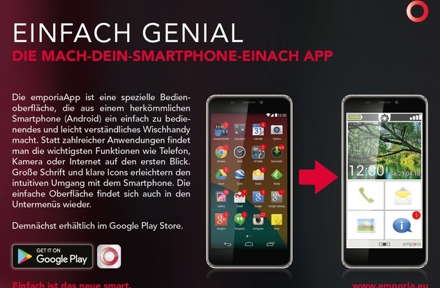 Dazu hat emporia eine Digitalisierungsoffensive gestartet, die neben bedienerfreundlichen Smartphones und speziellen Anwendungen wie die Mach-dein-Smartphone-einfach App auch Schulungen und Trainings für digitale Einsteiger beinhaltet.