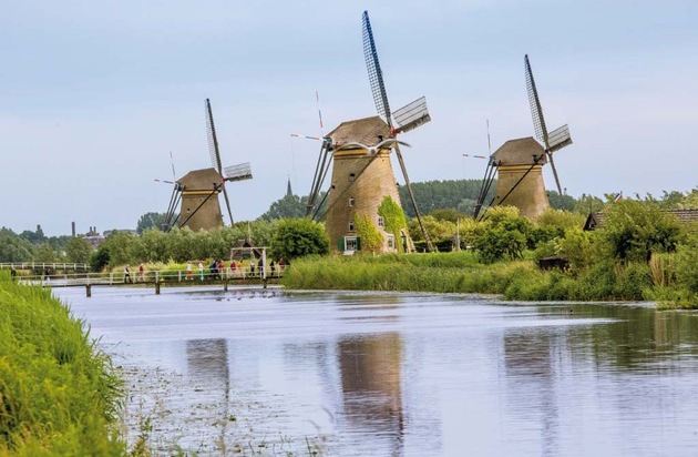 Fahrtgebiet der Excellence Countess zu den Windmühlen Hollands. Weiterer Text über ots und www.presseportal.ch/de/nr/100018141 / Die Verwendung dieses Bildes ist für redaktionelle Zwecke honorarfrei. Veröffentlichung bitte unter Quellenangabe: "obs/Reisebüro Mittelthurgau Fluss- und Kreuzfahrten/fotofilm@franzzwickl.at"
