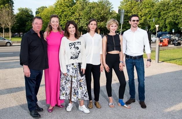 MUNICH, GERMANY - JULY 03: Peter Kurth (L-R), Munich Film Festival director Diana Iljine, Iris Berben, Laura de Boer, Katharina Schlothauer and Oliver Berben attend the premiere of the first and second episode of the series 'Die Protokollanttin' (The Typist) as part of the Munich Film Festival 2018 at HFF Muenchen on July 2, 2018 in Munich, Germany. (Photo by Lennart Preiss/Getty Images for Constantin) / Weiterer Text über ots und www.presseportal.de/nr/126258 / Die Verwendung dieses Bildes ist für redaktionelle Zwecke honorarfrei. Veröffentlichung bitte unter Quellenangabe: "obs/Constantin Television/Lennart Preiss"