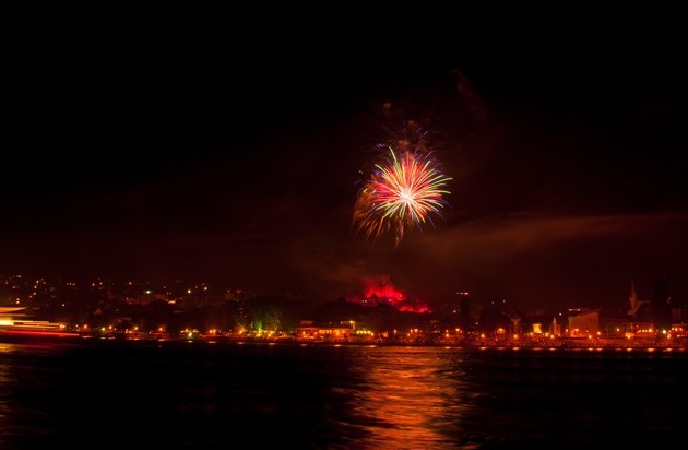 fireworks at the Rhein in Flammen festival in Bingen / Weiterer Text über ots und www.presseportal.ch/de/nr/100018141 / Die Verwendung dieses Bildes ist für redaktionelle Zwecke honorarfrei. Veröffentlichung bitte unter Quellenangabe: "obs/Reisebüro Mittelthurgau Fluss- und Kreuzfahrten/Jule_Berlin"