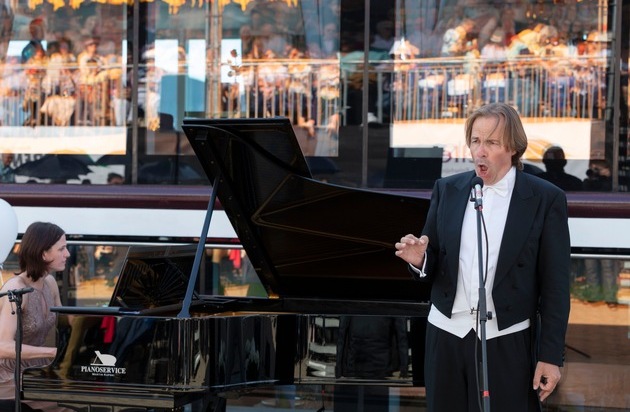 Bariton und Schleusenkonzertinitiator . Burkhard von Puttkamer. Weiterer Text über ots und www.presseportal.ch/de/nr/100018141 / Die Verwendung dieses Bildes ist für redaktionelle Zwecke honorarfrei. Veröffentlichung bitte unter Quellenangabe: "obs/Reisebüro Mittelthurgau Fluss- und Kreuzfahrten/Frank Schwarzbach"